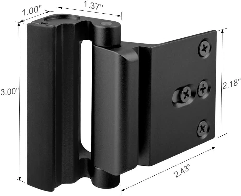Home Security Door Lock Reinforcement - Child Proof High Black Product Details Brand: WINONLY Special Feature: Anti-Bump, Resettable Lock Type: keyless Item dimensions L x W x H: 1 x 2.43 x 3 inches Material: Aluminum Recommended Uses For Product: Inward-opening apartment door, bedroom door, front door, back door, patio door courtyard door, etc. Style: Home Security Door Reinforcement Lock Color: Black Number of Pieces: 1 Included Components: Home Security Door Reinforcement Lock 1 Pak Controller Type: Mechanical knob Shape: Rectangular Item Weight: 1 Pounds Control Method: Touch Model Name: Door Lock U95278 Manufacturer: WINONLY Part Number: Door Lock U95278 Item Weight: 1 pounds Product Dimensions: 1 x 2.43 x 3 inches Country of Origin: China Item model number: Door Lock U95278 Is Discontinued By Manufacturer: No Item Package Quantity: 1 Special Features: Anti-Bump, Resettable Batteries Included?: No Batteries Required?: No Brand: WINONLY Special Feature: Anti-Bump, Resettable Lock Type: keyless Item dimensions L x W x H: 1 x 2.43 x 3 inches Material: Aluminum Home Security, Sturdy Door Reinforcement Lock: 3" Stop metal home security door lock with 8 screws, including 4 long and 4 short, so you can choose according to your needs. The door latch lock can withstand a force of 800 lbs, which is 12 times stronger than a normal deadbolt, providing effective protection against forced entry. Front door lock makes you feel safe during the day or at night, enabling more relaxed rest. WINONLY door lock is an ideal choice for enhancing your home security. Easy to Install, Easy to Use: With a power screwdriver and drill, you can install the door safety lock on the door frame within 5 minutes. The metal reinforcement door lock comes with an installation manual for your reference during the installation process. When the door is locked, reach out and press the upper and lower grooves of the reinforced door lock and pull horizontally to the fully unlocked state to unlock. This ensures quick unlocking in any situation, helping prevent accidents. Childproof Lock Providing Peace of Mind: Reinforcement lock for front door features a child safety protection function. Door security lock unique spring-loaded design prevents children from opening the door to strangers. Flip lock for door safeguards your children from potential dangers such as the streets or pools when you're away or occupied. And for the elderly or women living alone at home, door lock reinforcement also provides an additional sense of security, making people more at ease. Suitable for Most Types of Doors: Whether you are a tenant or a landlord, you need to consider the safety of your property and family. High door locks security door lock can meet your needs. WINONLY door lock is suitable for any inward-opening apartment door, bedroom door, front door, back door, patio door and courtyard door. Please note: top door lock is not suitable for french double doors, garage doors, doors with gaps less than 0.07", outward opening doors, or doors with misaligned frames. Gift Ideas, Professional Service: The inward door lock is a unique, useful gifts for your family and friends, offering them security and peace of mind. The WINONLY customer service team will ensure that you have a satisfying shopping experience. If you have any questions during the purchase or use of our door locks, please feel free to contact us. With their professional insight and experience, our customer service team is dedicated to delivering tailored advice and solutions for your needs.