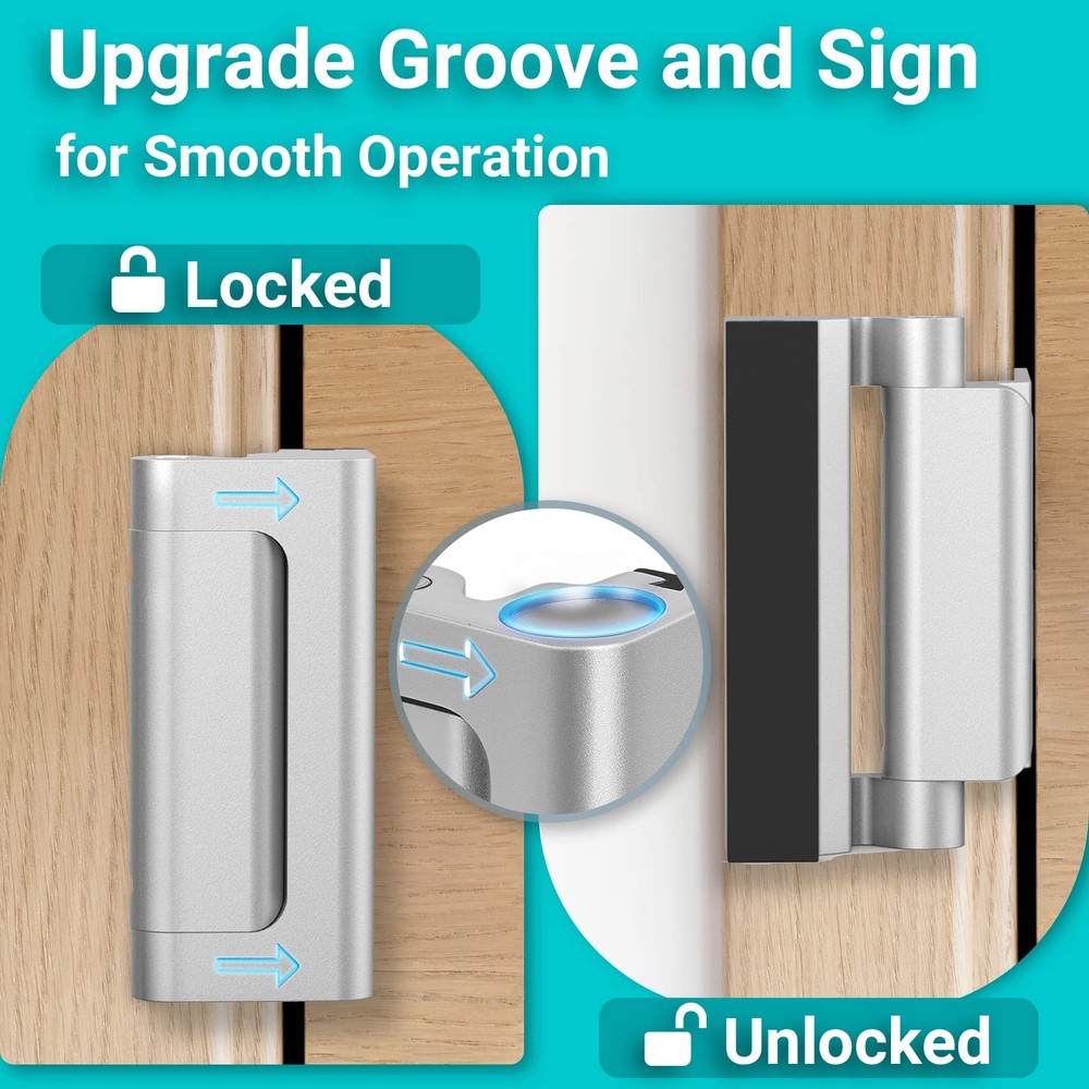 Designed for Doors that Open Inward, Please Check Before Purchase: front door lock is specifically designed for doors that open inward such as front and back door, balcony door, bedroom, backdoor, and even apartment door. It's not suitable for the apartment door if the type follows: Door seam is less than 0.07", slat door, double door, the door frame is too large, or the door opening outward. door reinforcement lock provides privacy while increases your family and home security Keep Your Home Safe, Prevent Unauthorized Entry, and Provide You with Peace of Mind: security door locks are designed to withstand 800 lbs. of force, 12 times stronger than a normal deadbolt against being kicked in. Adding high security door lock for front door security, door inside, bedroom door security lock, side and garage doors and basement doors makes you feel more at ease and more secure in your home Improved Groove and Sign Design, Easier to Operate in an Emergency: Place your index finger and thumb on the home security door lock to pinch both the top and bottom grooves, and slide lock away from the base plate along the door in the direction of the hinges, then pull outward to open the lock. Reverse the actions to close. flip lock for door upgrade groove design allows easier to open in case of emergency Perfect for Women Live Alone, Elders, Family with Tollders and Pet: If you want feel secure and piece of mind with a toddler that can now easily open doors, or stop a highly intelligent furry friends that figured out how to turn door knobs, sturdy front door safety lock for kids is no doubt your perfect choice. The door safety lock is also ideal for elders or women who live alone to feel safer. Absolutely apartment and home security Essential door lock Easy to Install: Use power screwdriver and drill to mount security door lock on your door frame, finish DIY, the installation is less than 5 minutes! reinforcement door lock is equipped with 4*1" scews and 4* 2" scews, the length of the screw can be selected as needed Worry-Free Purchase: Secure home by , door reinforcement lock defend your home safe, not only prevent break-in, but also easy open from inside when meet urgent. top lock for front door provide considerate service to make sure you could buy with confidence and would try our best to solve any problem until you are satisfied
