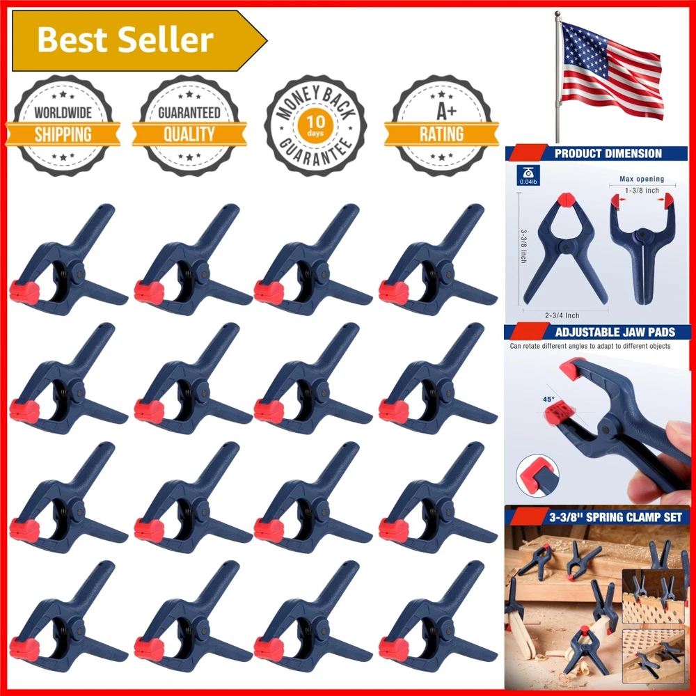 High-Strength 3-3/8" Spring Clamp Set - Versatile for Woodworking & Photography ‹ › ‹ › ‹ › ‹ › ‹ › ‹ › ‹ › ‹ › ‹ › High-Strength 3-3/8" Spring Clamp Set Versatile for Woodworking & Photography Product Features: High-quality Nylon: Our 16-piece spring clamp set is crafted from reinforced nylon, ensuring durability and a long-lasting hold. Flexible Jaw Pads: Equipped with rotating pads that adjust from 0 to 45°, allowing you to adapt clamping to various objects seamlessly. High-strength Spring: Guarantees a maximum opening of 1-3/8" with reliable clamping power for at least 24 hours. Anti-slip Grip: Features an ergonomic handle that provides a comfortable grip, reducing fatigue while enhancing your efficiency during use. Wide Applications: The perfect partner for woodworking, photography backdrops, and a plethora of DIY projects. Why Choose Our Spring Clamp Set? Elevate your woodworking and photography endeavors with our High-Strength 3-3/8" Spring Clamp Set . Made from high-quality, reinforced nylon, each clamp is designed to provide a durable and reliable hold. With flexible jaw pads that rotate to accommodate various angles and surfaces, clamping has never been easier. The ergonomic anti-slip grip ensures that you can work longer without discomfort, while the high-strength spring guarantees powerful clamping for extended periods, making it an essential tool for both professionals and DIY enthusiasts alike. Don’t compromise on quality—invest in our versatile spring clamp set and watch your projects come together with ease and confidence! Shipping Free & Fast Shipping - We offer free shipping to most of the USA with a normal delivery time of 3-7 days. However, due to the current situation, additional delivery time (up to 3 weeks) may be required for some items. Alternative Carriers - We may use alternative carriers (e.g. USPS, FedEx, UPS, etc.) to ensure your package arrives safely and on time. Due to the use of multiple carriers, we are unable to provide a tracking number automatically. Handling Time - Orders are processed and shipped within 1-2 business days of receiving cleared payment. Shipping Restrictions - Shipping to Alaska, Hawaii, Puerto Rico, Guam, and other US territories may incur shipping charges or delivery restrictions. Please contact us before ordering, or your order can be refunded/cancelled. State Restrictions - There may be restrictions based on your state of purchase. For example, certain items may not be shipped to California due to state regulations. Contact for Tracking Updates - If you require tracking updates or have any concerns about the delivery of your order, please feel free to contact us, and we will be happy to assist you. Return 30-Day Hassle-Free Returns - We want you to be completely satisfied with your purchase. If you are not, you can return the item within 30 days of receiving it for a full refund or exchange. Easy Return Process - To start a return, simply contact us and we will provide you with a prepaid return shipping label and detailed instructions. Restocking Fee - There are no restocking fees for returns. However, the buyer is responsible for return shipping costs if the return is not due to a seller's error. Refund Processing Time - Refunds will be processed within 5 business days of receiving the returned item in its original condition. Payment We accept all major credit cards, PayPal, and Apple Pay for your convenience. Your payment information is secure and encrypted to ensure a safe and seamless transaction. Please complete your payment within 3 days of purchase to avoid any delays in shipping. Feedback Your feedback is extremely important to us. We strive to provide the best products and customer service possible. If you are satisfied with your purchase, please take a moment to leave us a positive review. If you have any concerns or issues with your order, please contact us before leaving negative feedback. We are committed to resolving any problems and ensuring your satisfaction. Contact Us If you have any questions or concerns, please feel free to reach out to our customer support team. You can contact us through the eBay messaging system. We are available Monday to Friday, 9:00 am to 5:00 pm EST, and we will do our best to respond to your inquiry within 24 hours. Buy it now and enjoy a pleasant shopping experience! UPC: Not Set Model: Spring Clamp Set Item Width: Spring Clamp Set Item Length: Spring Clamp Set Item Height: Spring Clamp Set Item Diameter: 3-3/8 Item Weight: 12.3 ounces Unit Quantity: 16 Material: Nylon,Plastic Brand: Unbranded Type: Spring Clamp Number of Pieces: 16 Size: 3-3/8 in Jaw Size: 1-3/8 in Color: Blue Manufacturer Warranty: Not Set MPN: Not Set Country/Region of Manufacture: Not Set Unit Type: oz Personalize: Not Set