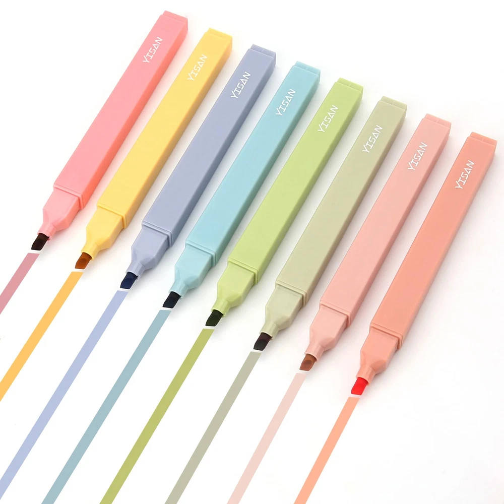 Elevate Your Stationery Game: highlighters offer a beautiful range of pastel colors that are perfect for journaling, note-taking, and more Experience Ultra-Smooth Writing: Our soft chisel tips provide a comfortable writing experience that glides effortlessly across the page Quick-drying:Our high-quality pastel ink dries quickly and won't smear, so you can highlight with confidence Slim and Portable Design: Our pocket-sized highlighters are lightweight and take up minimal space, making them perfect for on-the-go use Versatile Chisel Tip: With two line widths (1mm and 4mm), our highlighters can be used for highlighting, underlining, and even drawing