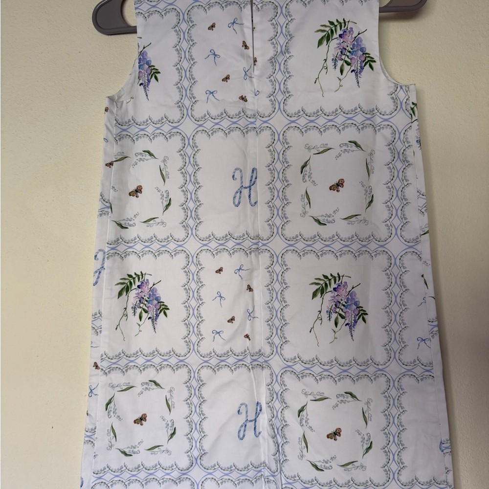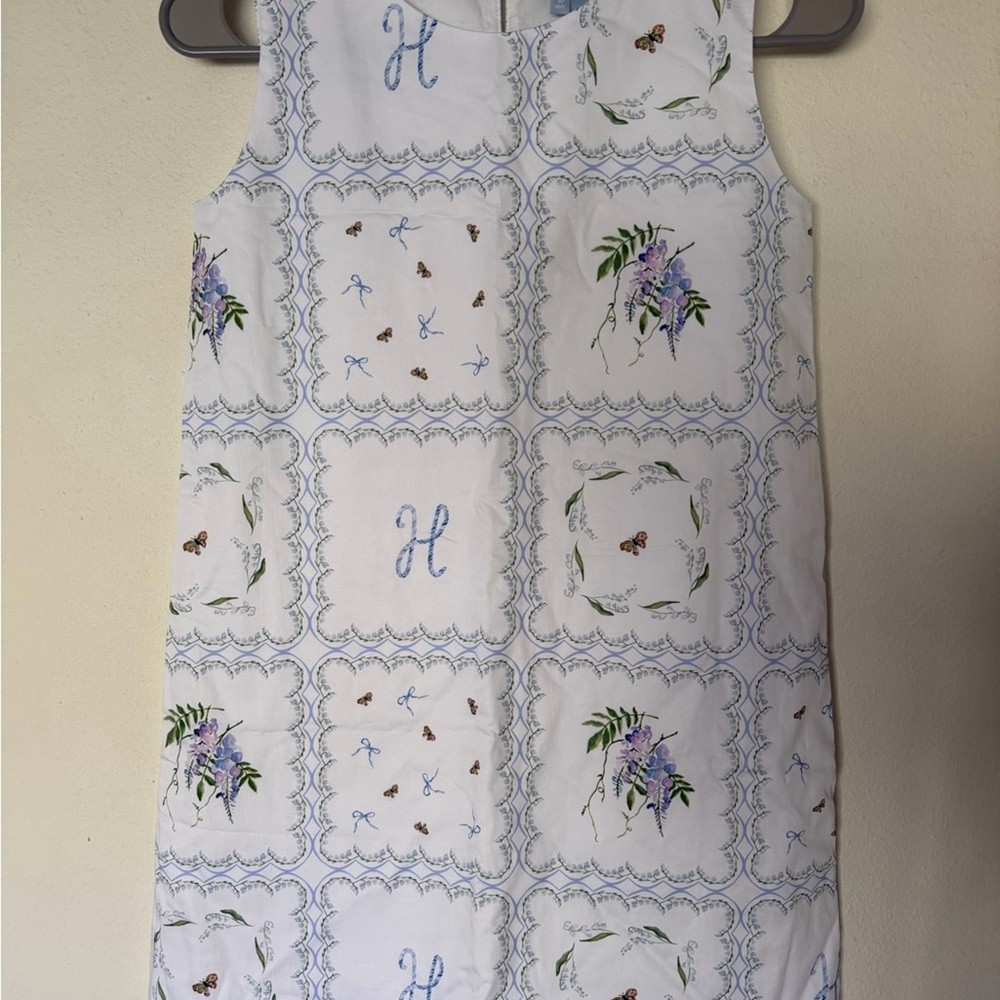 A classic sleeveless shift dress, made mini. A boatneck fit adds just the right amount of polish, while a structured but loose shape makes the dress easy to move and play in. Features Sleeveless High Neck Lined 100% cotton Excellent condition. Would be perfect for Easter or even just a little girl with an “H” initial!