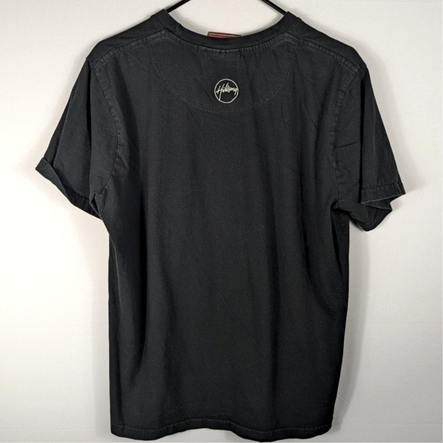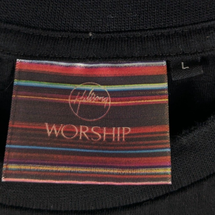 Item Details: • Brand: Hillsong Worship • Size: Large • Material: 100% cotton • Color: Black • Style: Graphic T-shirt • Print: Abstract multicolor stripe artwork • Back detail: Hillsong logo at neckline • Condition: No visible flaws in provided images • Measurements: – Pit to pit: 21" – Length: 27" Backend Keywords: christian shirt, worship tee, abstract art shirt, faith apparel, hillsong merch, graphic tee unisex, religious clothing, church apparel, concert merch tee