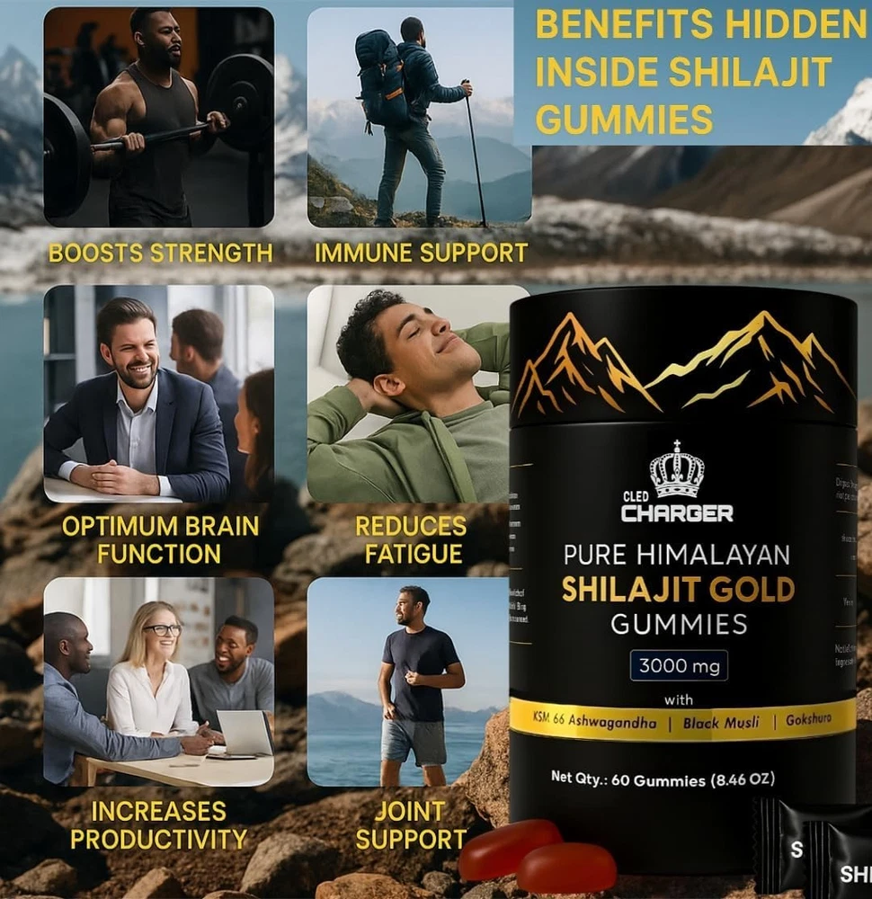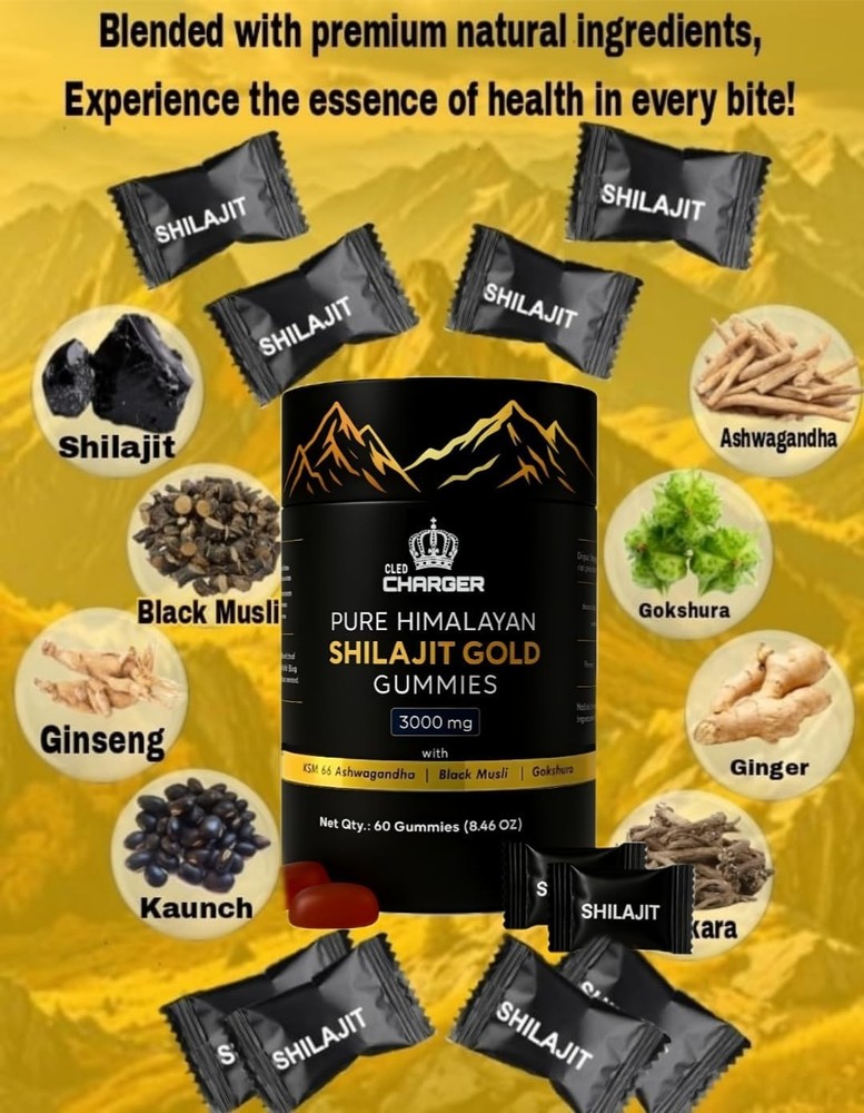 Organic Pure Himalayan Shilajit Gummies Gold, with Ksm 66 Ashwagandha, Gokshura 100% Natural | No Added Sugar Non-GMO | Fulvic Acid & 85+ Trace Minerals for Men, Women | 60 Gummies [SOURCED FROM THE HIMALAYAS] Harvested from the untouched Himalayan peaks at 18,000 ft, these gummies contain premium, gold-grade Shilajit resin. Developed using data-backed formulation, this high-purity supplement is your daily dose of trusted, powerful energy. 🧪 [LAB TESTED & QUALITY ASSURED] Each batch is lab-tested for heavy metals, fillers, and additives to ensure safety and purity. Made without added sugar, corn starch, glucose syrup, artificial colors, or gums, these gummies are 100% vegan, natural, and non-GMO. ❌【No Sugar, Clean Ingredients】 Formulated without added sugar, artificial colors, or preservatives. These vegan-friendly gummies are non-GMO, gluten-free, and made for clean daily supplementation. ⚡ [NATURE’S ENERGY BOOST] Packed with fulvic acid, humic compounds, and over 85+ trace minerals, these gummies naturally support energy, endurance, and overall vitality. No chemicals, no contaminants — just clean, plant-based performance support. 🧳Portable & Travel-Friendly: Each gummy comes individually wrapped, with 60 gummies in every pack—ideal for active routines, travel, and everyday wellness. Whether you're at the office, hitting the gym, or out and about, these convenient gummies offer a clean, hassle-free way to stay on track with your daily supplement needs—anytime, anywhere. 👫【For Men & Women】 Formulated to boost strength and endurance for all genders, promoting mental clarity, sustained energy, and balanced wellness in daily life Dosage: Take 2 gummies daily.
