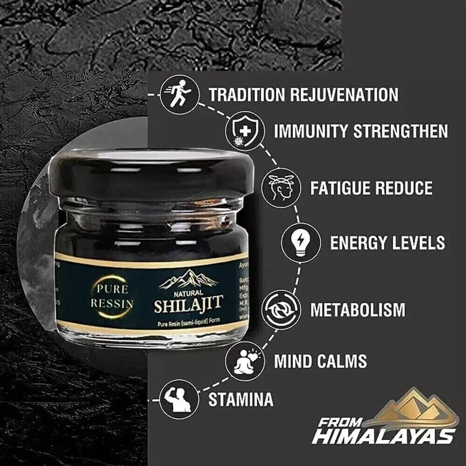 Pure Soft Resin Shilajit from the Himalayan Mountains If you’re wanting to improve your overall health, while empowering your body and mind, there are few substances more powerful than Himalayan Shilajit! Himalayan Shilajit is a rejuvenating age-old natural substance that has stood the test of time amongst many Eastern cultures. Today we know it worldwide as one of nature's most powerful nutritional substances for enhanced energy and vitality. It contains fulvic acid, plus over 85 trace minerals in their ionic form, making it a true powerhouse for natural and personal empowerment. In essence, Shilajit supports the balanced function of all body systems, boosting or calming the body’s inner energy as needed. Why is Himalayan Shilajit the Best? (India vs Russia) There are two types of Shilajit – Himalayan from India and Altay (Siberian) from Russia. We only use Shilajit from the Himalayas in India. Himalayan is the top quality Shilajit. Himalayan Shilajit is harvested at altitudes of 16,000 to 19,000 feet where there is almost no chance for contamination. At such high altitude we experience much stronger winds, lower temperature, low oxygen and more UV light that naturally protect raw material. It is considered a grade "A" Shilajit. Whereas Altay or Siberian Shilajit from Russia is sourced at lower altitudes of 14,000 feet and is less potent. It is considered a grade "B" Shilajit. If it doesn’t say Himalayan Shilajit, it is almost definitely from Russia. Other important Facts: · Supreme grade sourced above 16,000 ft in the Himalayan Mountains. · 12.5 milliliters jar · Modern purification process, cold treated extraction · Fresh, double sealed, sourced from the Himalayas, made in the USA · Included free stainless steel measuring spoon · Includes a detailed information and instruction sheet. SHILAJIT is the fulvic acid plus trace mineral food supplement. We need minerals as essential building blocks for our cells to function and Shilajit is ready to fulfill that need. The critical advantage from other mineral supplements is that Shilajit is a 100% naturally harvested substance. It is not a concentrate, mix or synthesized product and their deposits are limited. During many million years of Shilajit formation, deep in Himalayan rocks, the Fulvic Acid evolved complex molecular bonds with minerals and metals. You can't get the same effect using mixed or concentrated extracts. SOFT HIMALAYAN SHILAJIT is the freshest form of all purified Himalayan Shilajit and is packed right after the extraction. It is not dried/processed, as much as the other forms of Shilajit, which preserve the most molecular properties at the original state. Customers Feel the Effect Right After the First Use: Shilajit is such an amazing product that you may notice an effect after just a few minutes of taking it. It gives a burst of energy and awakens the body. In Ancient Ayurveda and Rasayana practice of the East, Shilajit is called the most powerful superfood for inner rejuvenation. How to Use Use Included Spoon: We provide you with a spoon that measures exactly the recommended average serving size, which is 100mg for an average adult, t aken 1-2 Times a Day, 4-6 Times per Week. This will help you have consistency in the amount of extract consumed each time. Mix with Any Drink or Take It Straight If you love a cup of coffee or tea for your morning routine, it can now get even better! Our Soft Resin Shilajit can be perfectly mixed with any beverage, making it both nutritious and enjoyable. Of course, you can also take Shilajit by itself in the traditional and most effective way. Simply place it under your tongue or swallow it.