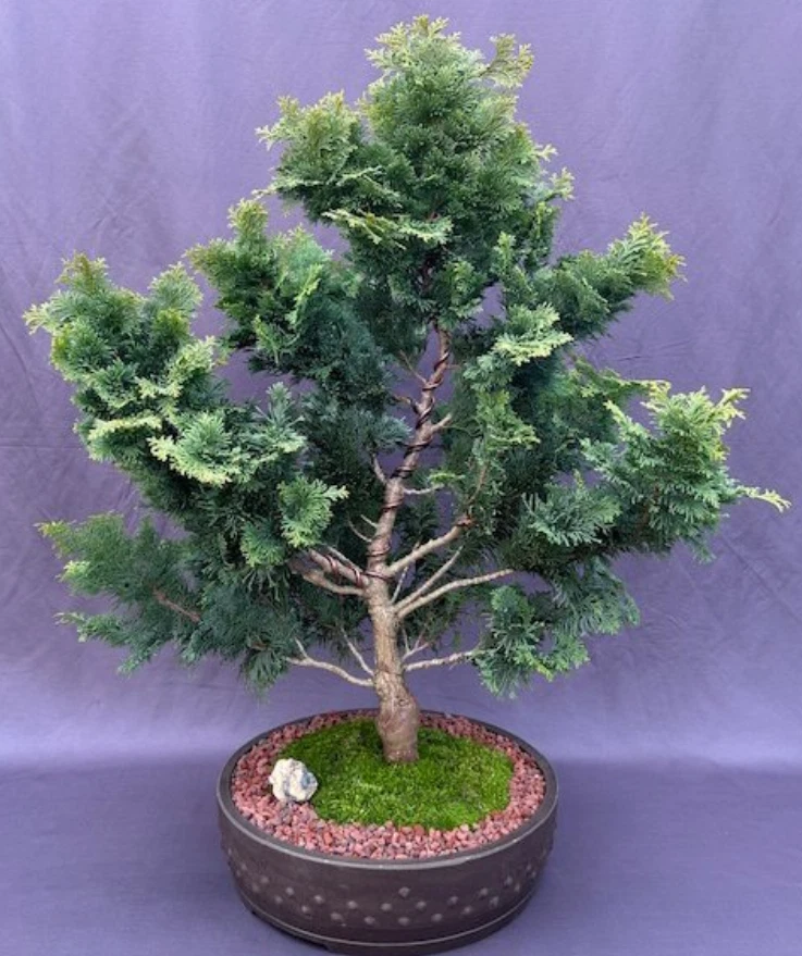Hinoki Cypress Bonsai Tree (chamecyparis obtusa 'Nana Gracilis') Christmas tree 43 years old, 11" x 15" x 25" tall. Recommended outdoor evergreen bonsai tree, grown and trained. Potted in a 12" brown rectangle mica ceramic container. Suitable humidity/drip tray is recommended. The Hinoki Cypress Obtusa 'nana' is a miniature evergreen conifer with flat, deep green, fan-like foliage. The leaves are edged with blue on the undersides. Pea-sized cones. Beautiful uncommon evergreen which is the smallest of the species. A very slow, hardy grower which will not grow much larger. Keep outdoors. Payment Payment accepted through Paypal. Shipping We do not offer local pickup or combines shipping. We do not ship to APO's. We shipping to PO Boxes. We only ship to the lower 48 states and do not ship to Alaska/Hawaii, US Protectorates, APO/FPO, Puerto Rico, Virgin Islands (U.S.), Bermuda, Greenland, Mexico, Saint Pierre and Miquelon Return We want you to be happy with your purchase. You may return items in its original condition within 30 days. Please to process a return.