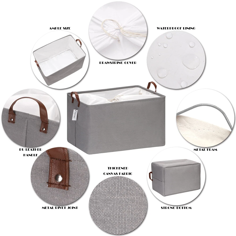 Hinwo 70L Extra Large Storage Bins, 2-Pack Closet Organizers and Storage, Foldable Clothes Storage Baskets with Handles, Containers for Clothing, Blanket, Comforters, Toys, Bedding (Gray) Spacious Storage Capacity – The rectangle large storage bin measures 22 x 15 x 13” to fit most of closets and shelfs, and provides 70L spacious space for storing a variety of items such as blankets, comforters, clothes, toys and other daily odds and ends Easy to Carry – Equipped with a pair of side handles, the storage basket can be easily moved, carried up and down stairs when filled with items, which is perfect for daily use, changing season and moving house Sturdy & Waterproof Material – Made of thickened canvas fabric with a layer of PE coating lining, the basket provides high tear resistance while the lining is waterproof which allows you to store wet clothes or other moist items Lidded & Collapsible Design – Made of soft fabric and equipped with a drawstring cover, the storage bin can keep items clean, allows you simply fold it down flat to 1 inch in height for space-saving storage when not in use and more flexible to fit diverse space than those baskets made of hard materials like plastic, wicker, and metal Serves many usage scenarios – The storage bin provides an efficient storage solution in home and office, under the bed, on the shelf, at the corner, and in the closet / wardrobe, to keep the space tidy and well-sorted, simultaneously offers stylish aesthetics for seamless coordinating with home décor Shipping We offer FREE shipping on all orders! We use a selection of shipping services such as UPS, FedEx, USPS etc. We only ship to the lower 48 states, no APO/FPO addresses or PO Boxes allowed. Local pickups and combined shipping options are not provided at this time. Return You can return a product for up to 30 days from the date you purchased it. Any product you return must be in the same condition you received it and in the original packaging. Please keep the receipt. Payment We accept payment by any of the following methods: PayPal Please pay as soon as possible after winning an auction, as that will allow us to post your item to you sooner! Feedback Customer satisfaction is very important to us. If you have any problem with your order, please contact us and we will do our best to make you satisfied. Contact Us If you have any queries, please contact us via ebay. We usually respond within 24 hours on weekdays. Please visit our eBay store to check out other items for sale! Thank you for shopping at our store.