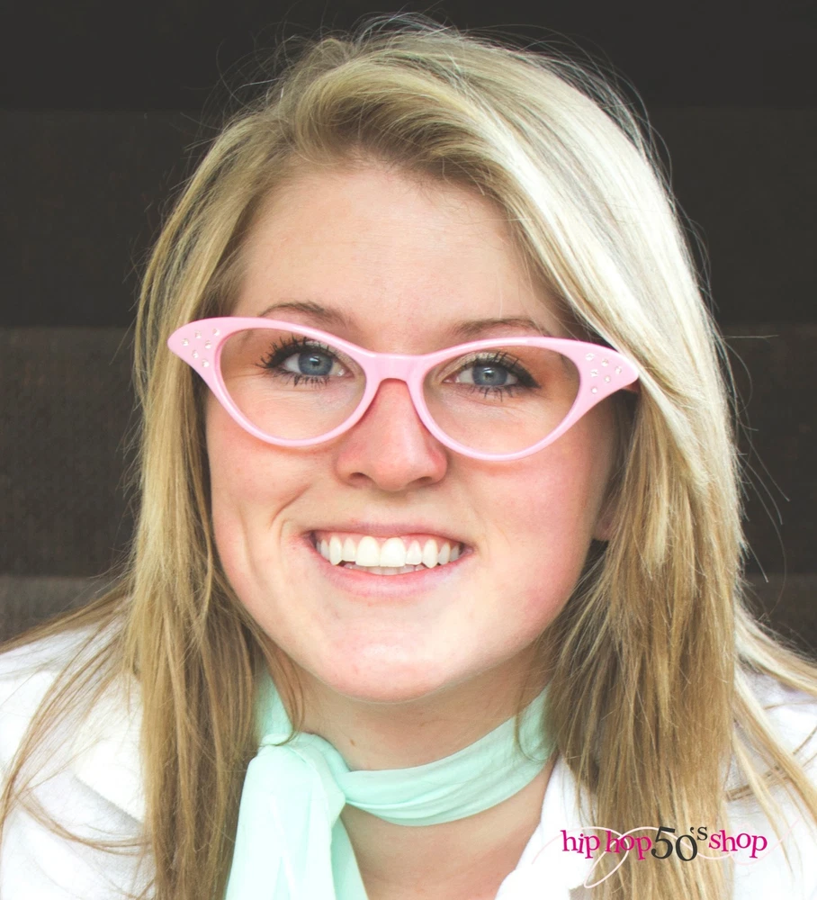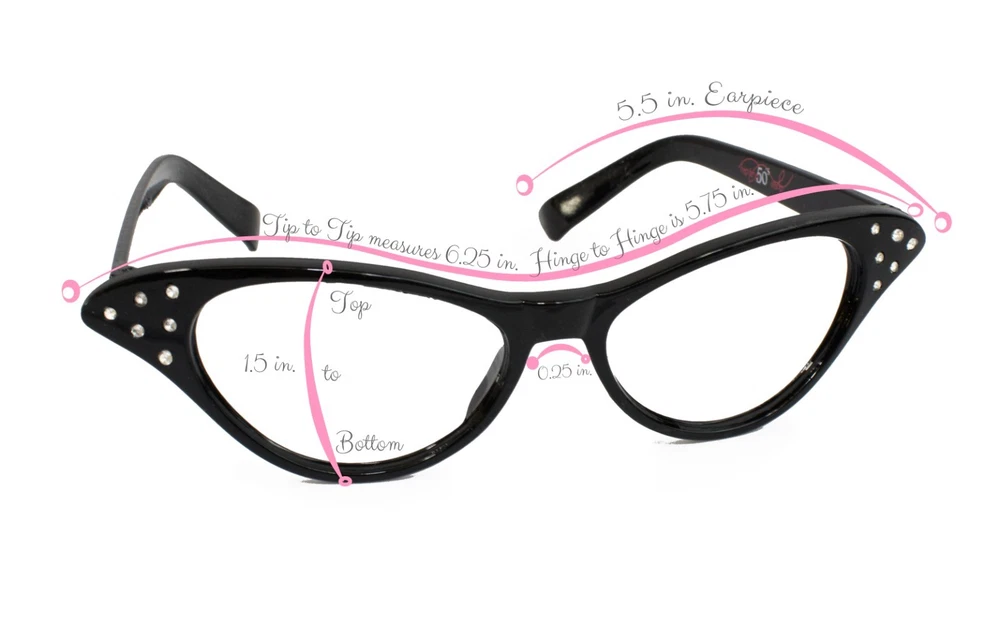 Powered by Frooition Home About Us Shipping FAQs Size Chart Contact Us Shop Categories POODLE SKIRT OUTFITS POODLE SKIRTS CRINOLINE/PETTICOAT SLIPS TOPS AND SWEATERS ACCESSORIES MENSWEAR CLEARANCE / CLOSEOUT Clearance/Closeout Items Hip Hop 50s Shop Adult Cateye Glasses Poodle Skirt Halloween Costume Accessory Item Description Made of a high quality, durable, impact-resistant plastic to insure that they will stay in one piece with all the twisting and dancing! You will not want to take off these adorable, light, and comfortable 50s cateye glasses! Perfect for a sock hop, halloween costume, casual wear or tea party. This stylish accessory is accented with beautiful rhinestones on the tips and the lenses are a clear durable plastic to give them that vintage retro look! Measurements in photos. These are adult size glasses. Please check out our other listings for child or toddler sizes. Made of a high quality durable impact resistant plastic. One size fits most adults Measurements shown in photos-- Hinge to Hinge - 5 1/2" Tip to Tip - 6 1/2" Colors Available: Black, Hot Pink, Light Pink , Purple, Red, Teal
