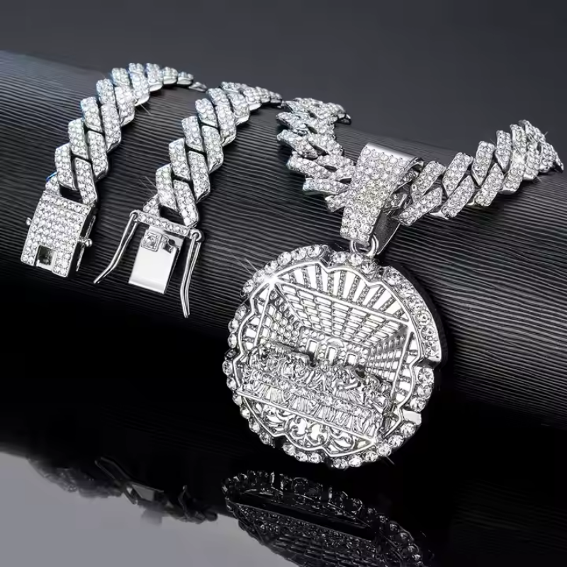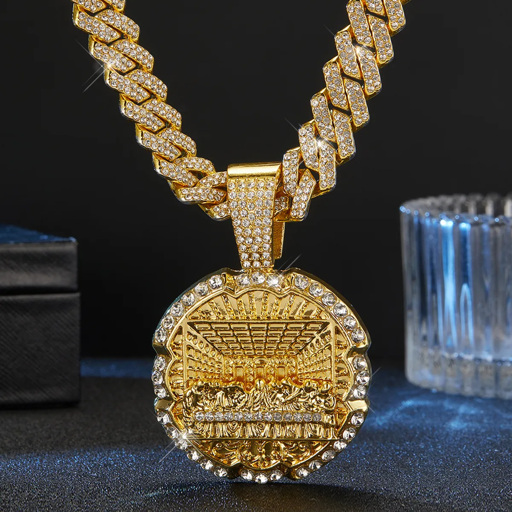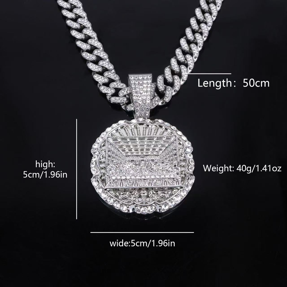 Product features: Zircon Elegance: Crafted from high-quality synthetic zircon, it precisely mimics real diamonds, offering a luxurious yet affordable alternative. Durable design: This necklace is made of high-quality copper, ensuring long-lasting durability without losing its luster or fading. It is very suitable for daily wear. Cuban chain style: This necklace features a classic Cuban chain design, exuding an eternal elegance and can be easily paired with various outfits. Multi-functional charm: This pendant showcases a captivating Last Supper design, adding a touch of uniqueness to any occasion, whether casual or formal. Suitable for both men and women: This necklace is specially designed for both men and women and can be matched with various styles. It is a versatile and fashionable accessory for everyone. About us: -Have any Questions? Please send an eBay message. Shipping: -Free Domestic Shipping, Shipped within 2 Business Day! Return Policy: -30 day money back guarantee! On Jul 2, 2025 at 23:06:21 PDT, seller added the following information: