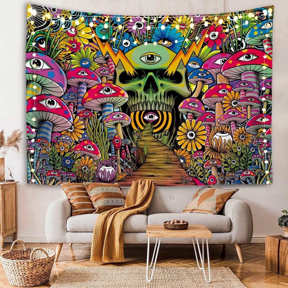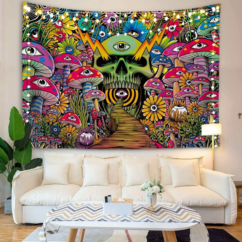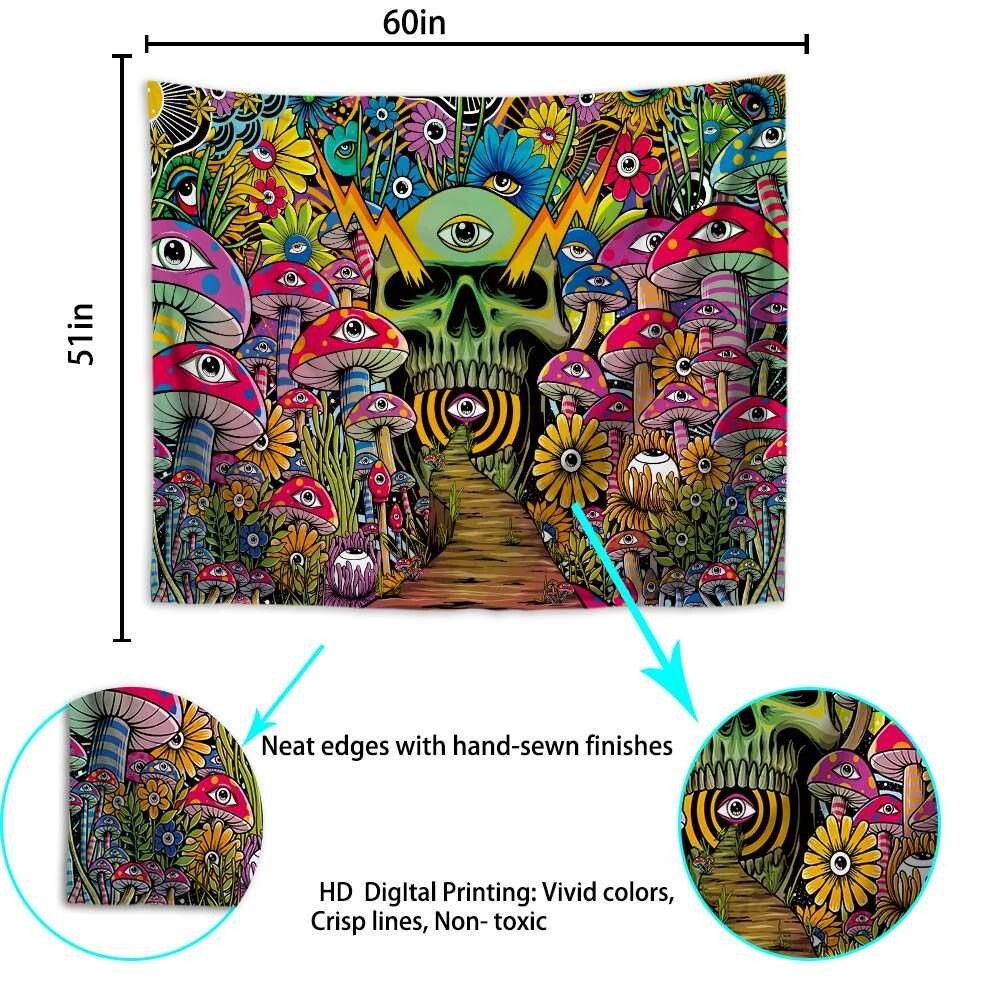Mandala Trippy Mushroom Moon Tapestry Bohemian Wall Hanging Bedroom Art Decor