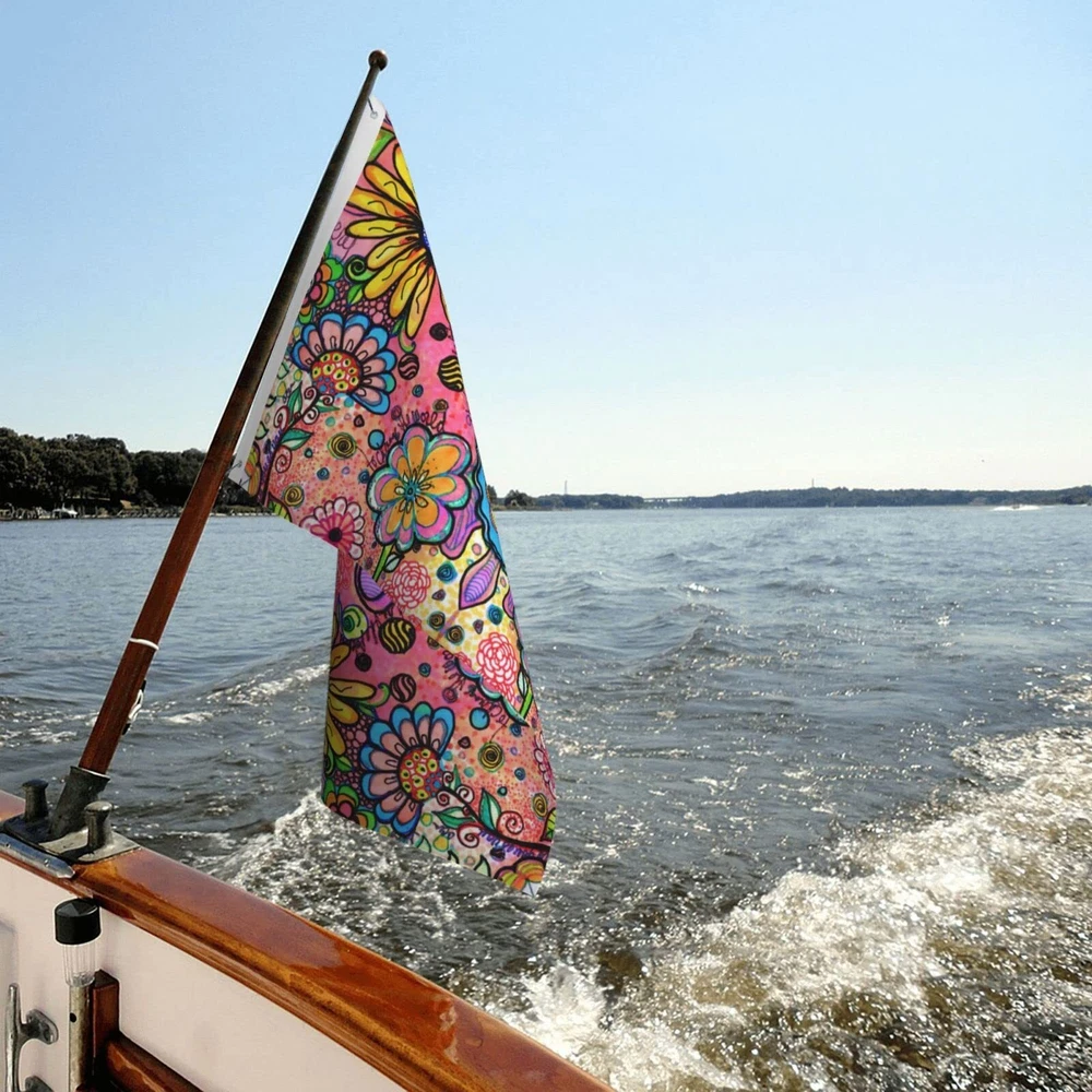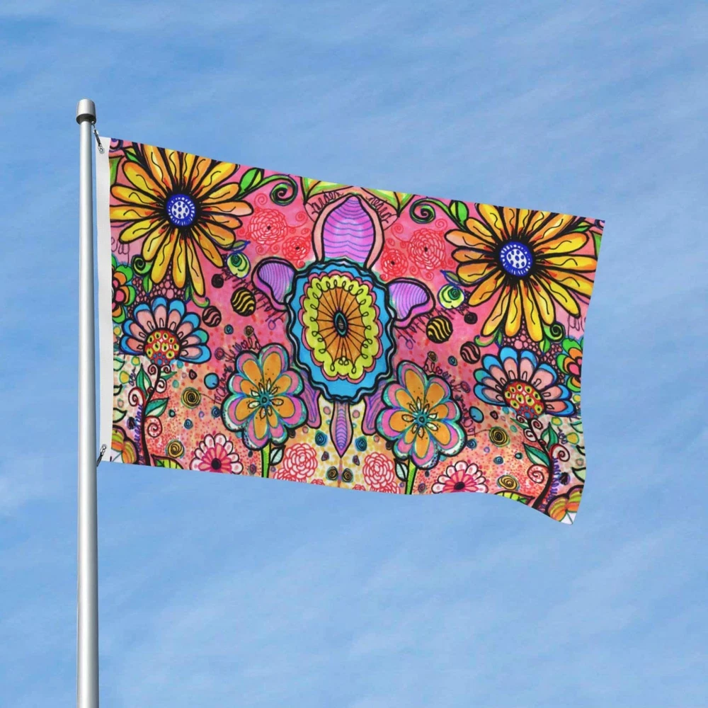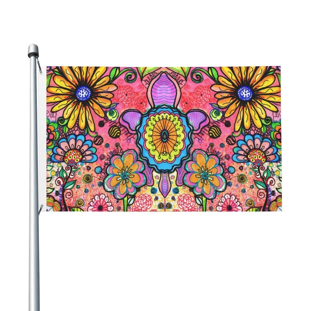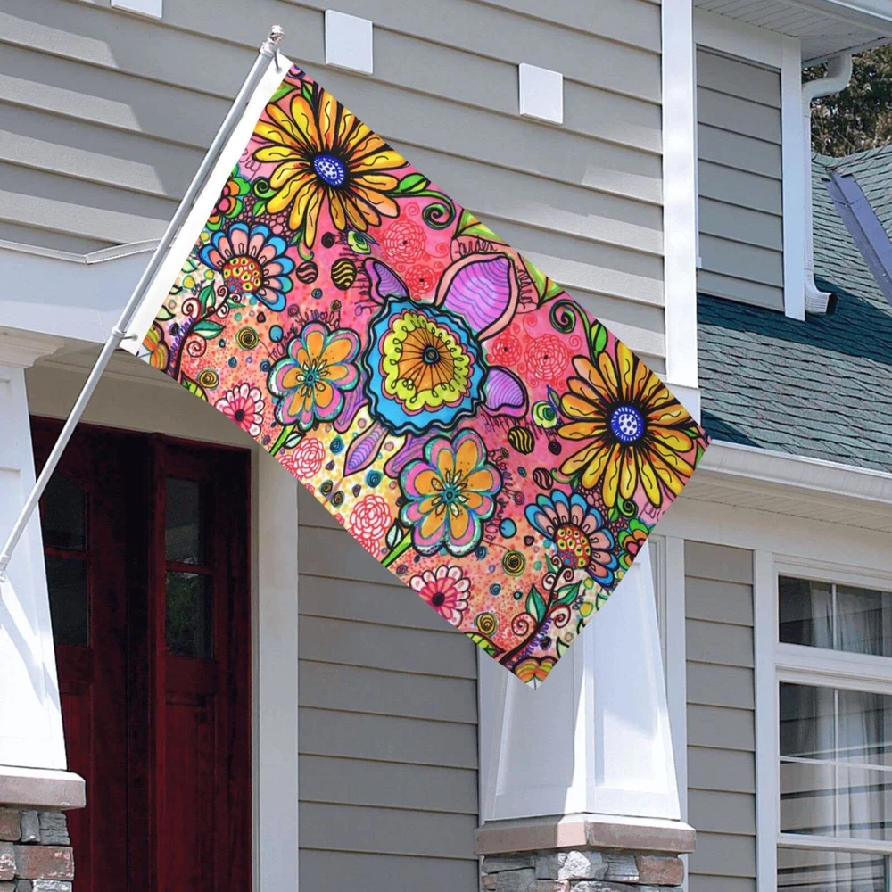 Hippie Art Flowers Flag 3x5 Ft Outdoor Polyester Garden Flag Double Sided Ban...