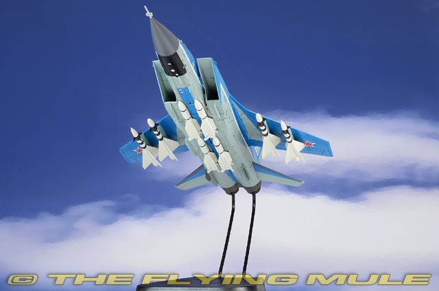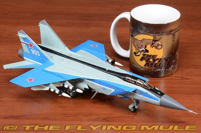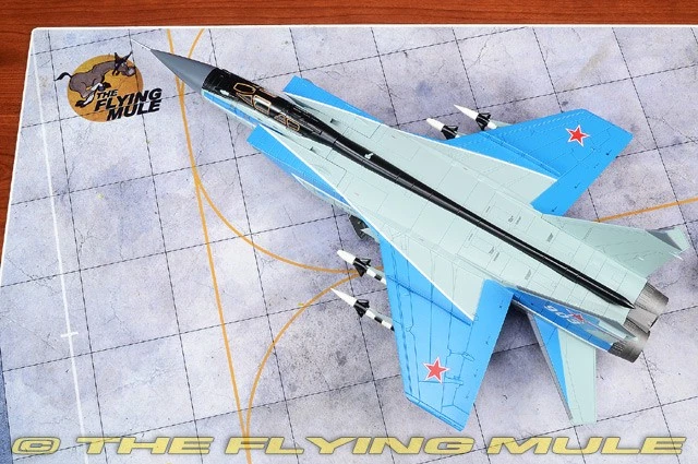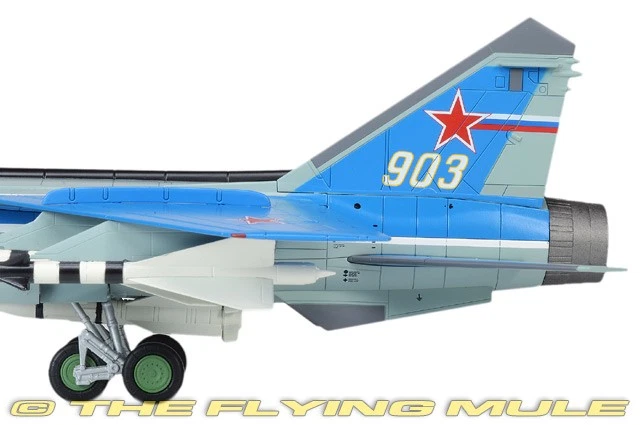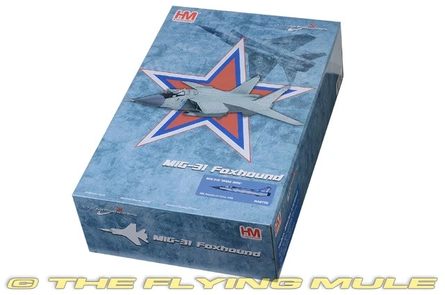 Hobby Master 1:72 Air Power Series HA9706 Mikoyan MiG-31E Foxhound-A Diecast Model Russian Air Force, White 903, Zhukovsky International Airport, Russia, MAKS Airshow 2005 Limited Edition 1:72 Scale Length Width Mikoyan MiG-31E Foxhound-A 12.5" 7.25" The MiG-31E is an export version of the Foxhound-A, of which the one and only prototype (serial 903) was first seen in 1997. The aircraft has downgraded systems, no active jammer, downgraded IFF and radar. It was offered to India, China and other countries and is presumably the version the Chinese almost bought in 1992. The variant was later cancelled. Mikoyan MiG-31E Foxhound-A Designed as an enhanced version of the MiG-25, the MiG-31 was first flown on September 16th, 1975. © Copyright 2003-2026 The Flying Mule, Inc. Hobby Master 1:72 Air Power Series The Hobby Master "1:72 Air Power Series" range presents detailed, ready-made diecast models of military aircraft. Hobby Master "1:72 Air Power Series" diecast airplanes feature: Diecast metal construction with some plastic components. Realistic panel lines, antennas, access panels and surface details. Pad printed markings and placards that won't fade or peel like decals. Presentation stand to display the aircraft "in flight". Accurately detailed underside with concealed screwheads. © Copyright 2003-2026 The Flying Mule, Inc.