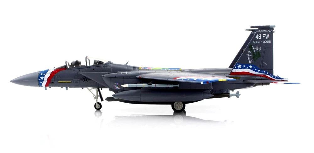 "Aut Vincere Aut Mori (Conquer or Die)" - Motto of the 1st Tactical Fighter Wing The McDonnell Douglas (now Boeing) F-15E Strike Eagle is an all-weather multirole fighter, derived from the McDonnell Douglas F-15 Eagle. The F-15E was designed in the 1980s for long-range, high speed interdiction without relying on escort or electronic warfare aircraft. United States Air Force (USAF) F-15E Strike Eagles can be distinguished from other U.S. Eagle variants by darker camouflage and conformal fuel tanks mounted along the engine intakes. The Strike Eagle has been deployed in Operation Desert Storm, Operation Allied Force, Operation Enduring Freedom, and Operation Odyssey Dawn carrying out deep strikes against high-value targets, combat air patrols, and providing close air support for coalition troops. It has also seen action in later conflicts and has been exported to several countries. The F-15E will be upgraded with the Raytheon APG-82 Active Electronically Scanned Array (AESA) radar after 2007, and the first test radar was delivered to Boeing in 2010. It combines the processor of the APG-79 used on the F/A-18E/F Super Hornet with the antenna of the APG-63(V)3 AESA being fitted on the F-15C. The new radar upgrade is to be part of the F-15E Radar Modernization Program. The new radar was named APG-63(V)4 until it received the APG-82 designation in 2009. The RMP also includes a wideband radome (to allow the AESA to operate on more radar frequencies), and improvements to the environment control and electronic warfare systems. While some of the F-15C/Ds have been replaced by the F-22 Raptor, there is no slated replacement for the F-15E in its primary "deep strike" mission profile. The Strike Eagle is a more recent variant of the F-15, and has a sturdier airframe rated for twice the lifetime of earlier variants. The F-15Es are expected to remain in service past 2025. The USAF has pursued the Next-Generation Bomber, a medium bomber concept which could take over the Strike Eagle's "deep strike" profile. The F-35A Lightning II is projected to eventually replace many other attack aircraft such as the F-16 Fighting Falcon and A-10 Thunderbolt II, and may also take over much of the F-15E's role; however, the F-15E has better combat range under payload. Pictured here is a stunning 1:72 scale diecast replica of a USAF Boeing F-15E Strike Eagle multi-role fighter that was attached to the 48th Fighter Wing then deployed to RAF Lakenheath, England, during 2022 . New for 2024! #HA4539 Dimensions: Wingspan: 7-inches Length: 10-1/2-inches Features: - Diecast construction - Opening cockpit - Accurate markings and insignia - Full complement of weapons - Interchangeable landing gear - Comes with seated pilot figure - Comes with display stand Historical Account: "The Panthers" - The 49th Fighter Training Squadron is part of the 14th Flying Training Wing based at Columbus Air Force Base, Mississippi. It operates T-38 Talon aircraft conducting flight training. The squadron was first activated as the 49th Pursuit Squadron in 1941 during the expansion of the United States military that preceded World War II. Immediately after the attack on Pearl Harbor, the squadron flew air defense patrols off the southern Pacific coast. In 1942, it was re-designated the 49th Fighter Squadron and deployed to England, but a few months later the squadron moved to the Mediterranean Theater of Operations. The squadron earned a Distinguished Unit Citation in 1944 and was inactivated in 1945. The squadron was activated again at Dow Field, Maine as one of the first units of Air Defense Command (ADC). It converted to Republic F-84 Thunderjets, being one of the first squadrons to do so. The squadron was inactivated in 1949. In 1952, the squadron, now designated the 49th Fighter-Interceptor Squadron, was activated to replace an Air National Guard squadron that was being released from active duty at Dow. For the next thirty-five years the unit carried out the air defense mission at Dow, Hanscom Field, and Griffiss Air Force Base, upgrading its aircraft until equipping with the Convair F-106 Delta Dart, which it flew for almost twenty years. The squadron was the last to fly that plane, inactivating in 1987 as the Air National Guard took over air defense mission. The unit was reactivated in 1990 as the 49th Flying Training Squadron at Columbus Air Force Base. Mississippi. It conducted the advanced phase of undergraduate pilot training and basic procedures and techniques of fighter employment since then except for a brief period when it was inactive in 1992-1993. In 2003, its name was changed to 49th Fighter Training Squadron to reflect this mission. Please note: We happily combine multiple sales into one order to reduce shipping charges. Please contact us first to determine the cost of shipping before proceeding to final checkout so we can clarify the procedure with you.