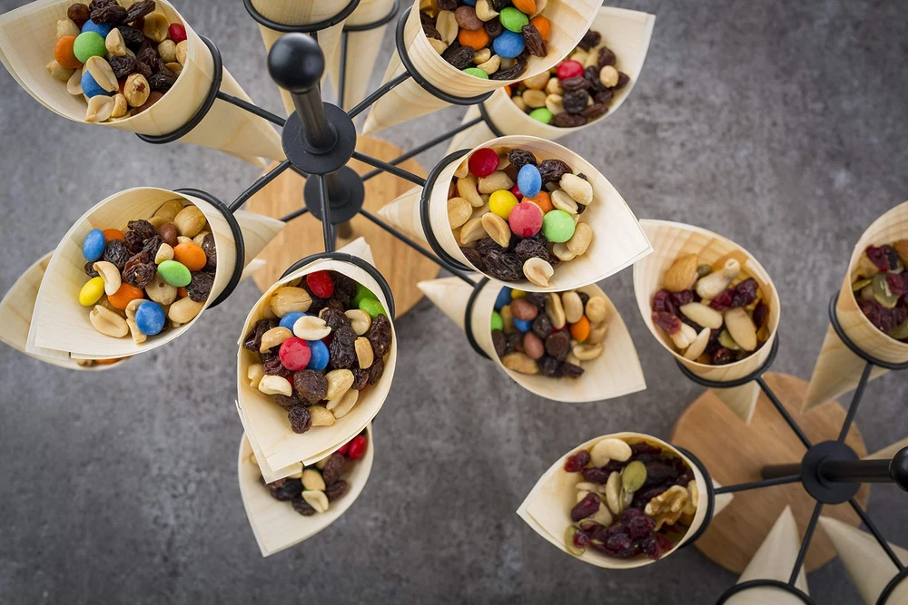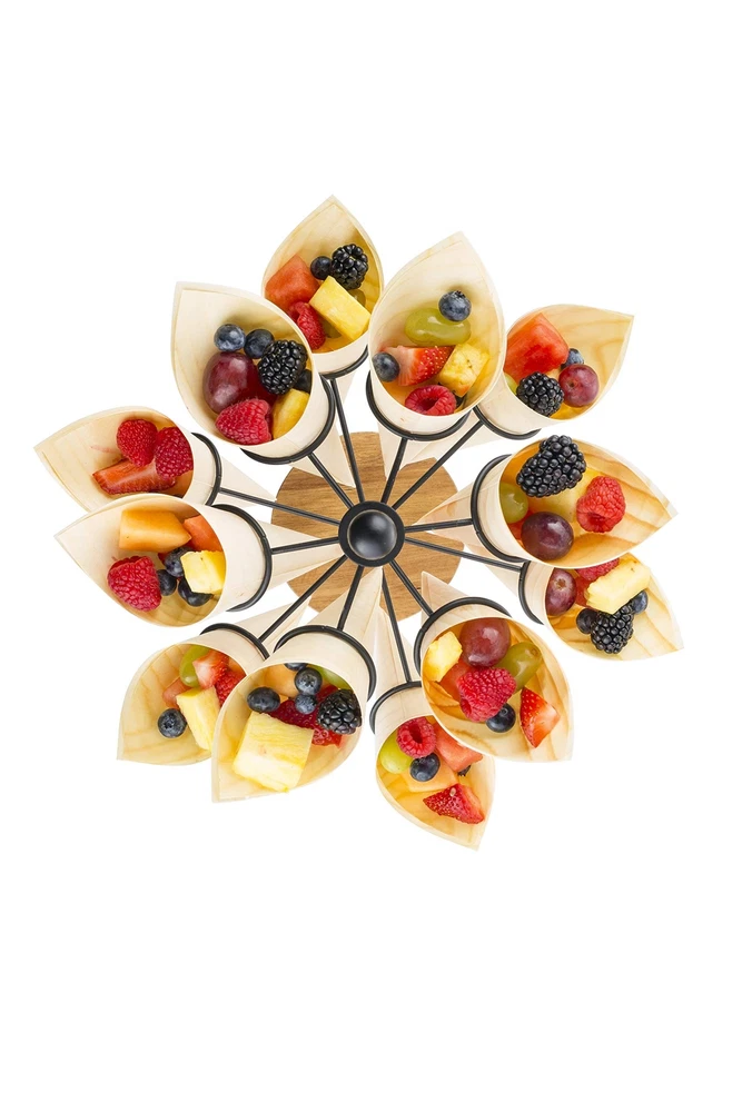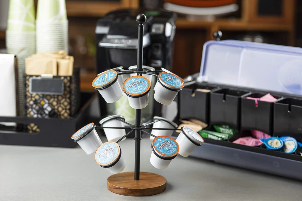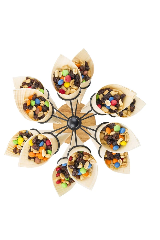 Cone Holder, Black Coated Steel & Acacia, Holds 12 Cones/K-Cups, 10 x 10 x 13.5" Cone Holder, Black Coated Steel & Acacia, Holds 12 Cones/K-Cups, 10 x 10 x 13.5" 's new Rotating Cone Holder is ideal for serving food in style The cone holder also serves as a k-cup storage to dress up your coffee station. Holds 12 cones/cups. Black coated steel with wood base fits all décor styles. Hand washing recommended. 's Pinewood Disposable Serving Cones are the perfect add-on for using with the cone holder.