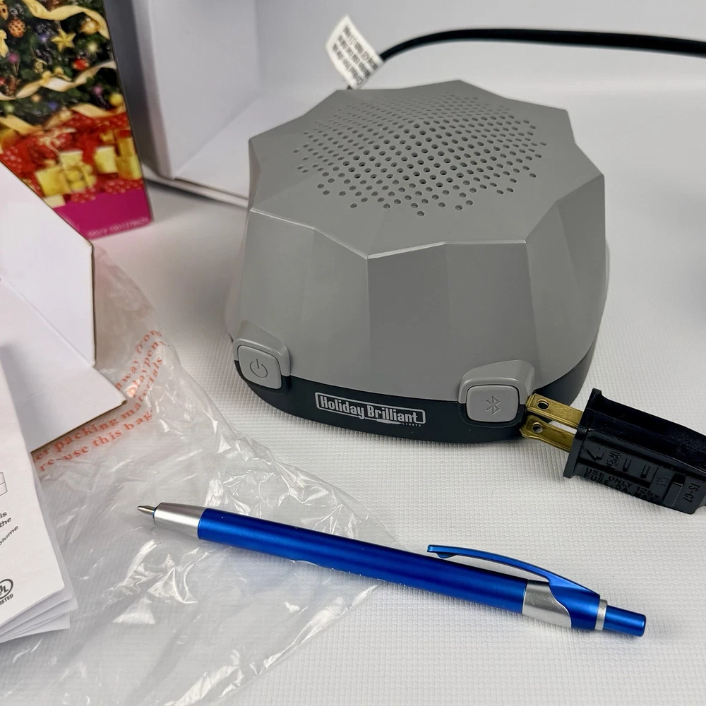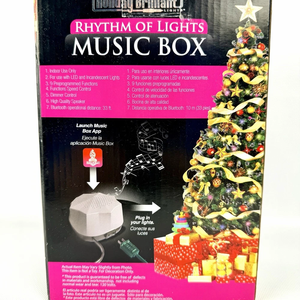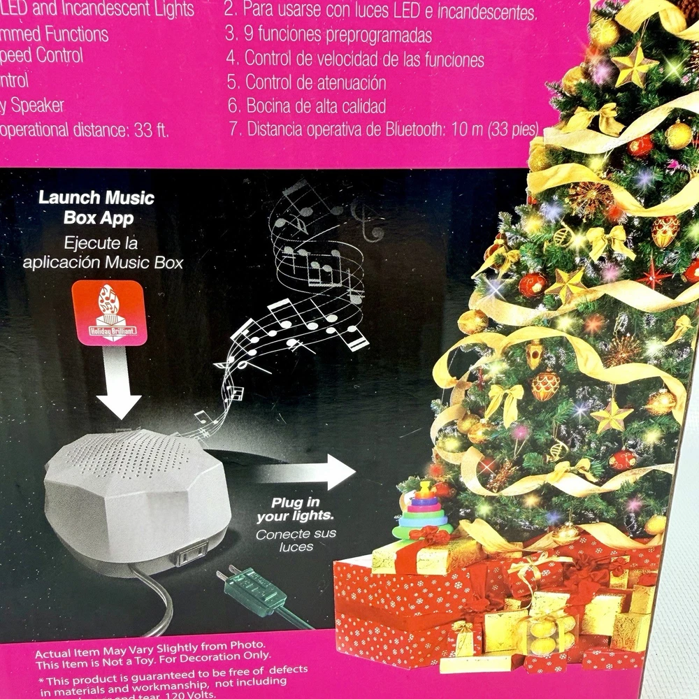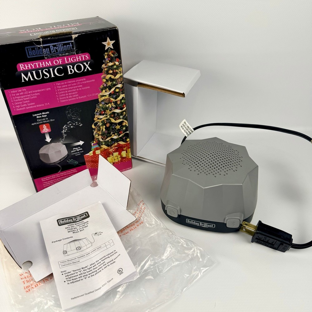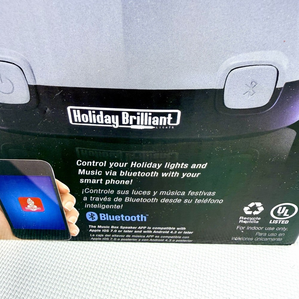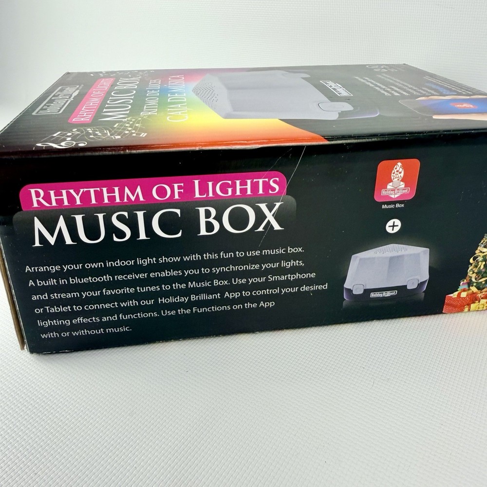 The Holiday Brilliant Rhythm Of Lights Music Box is a festive and enchanting addition to your Christmas decor. This Bluetooth-controlled musical light features a geometric design in gray plastic, perfect for indoor use with a wall plug-in power source. The speaker in the music box plays soothing music while the LED lights create a brilliant rhythm of lights. Add this Holiday Brilliant product to your home for a touch of holiday cheer and a smart home experience with Bluetooth connectivity. Tested works great, shows no wear comes with all original items packaging and instructions :)