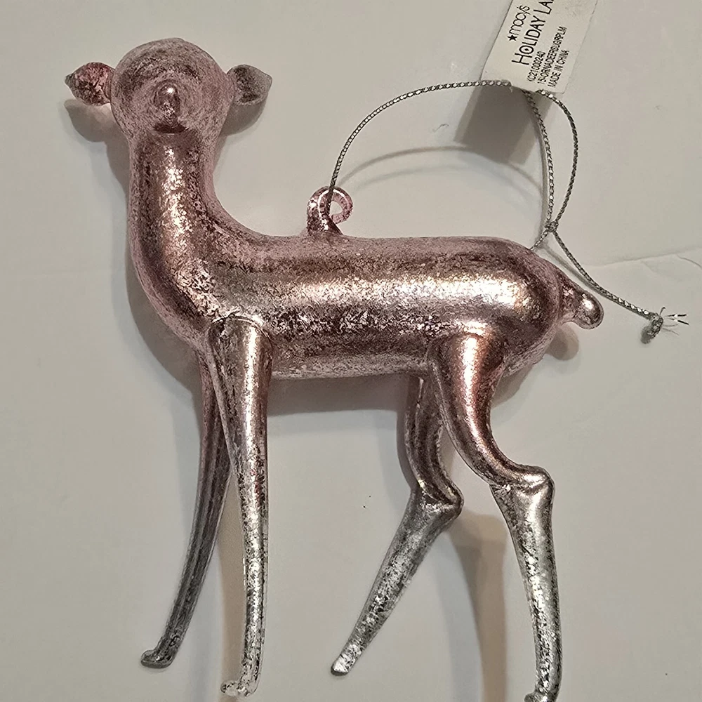 Product details The reindeer, a timeless icon of the winter season gets a fresh update with the metallic pink finish of this glass ornament from Holiday Lane's Sugar Plum collection. Approx. dimensions: 3.75"L x 1.75"W x 4.25"H Glass Spot clean The reindeer, a timeless icon of the winter season gets a fresh update with the metallic pink finish of this glass ornament from Holiday Lane's Sugar Plum collection. Approx. dimensions: 3.75"L x 1.75"W x 4.25"H Glass Spot clean