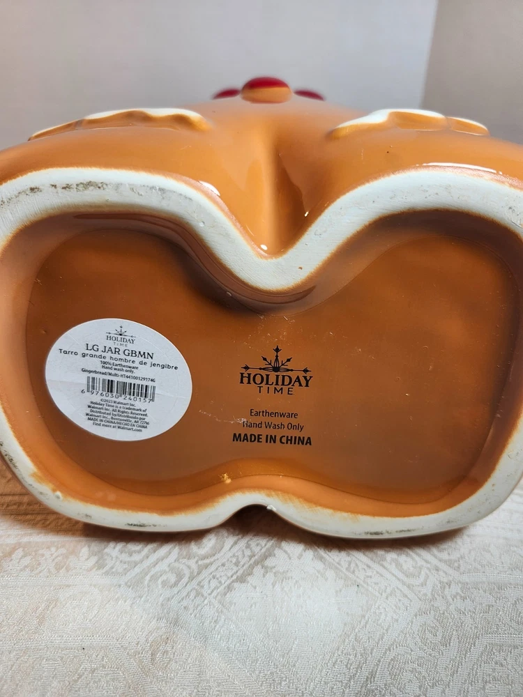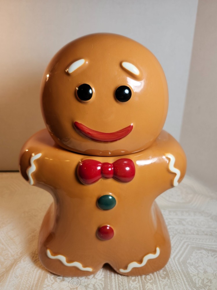The Holiday Time Gingerbread Man Earthenware Christmas Cookie Jar is a festive and charming addition to your kitchen storage. This medium-sized jar features a square shape with a lid, perfect for organizing your favorite holiday cookies. Made of ceramic and porcelain, the jar is adorned with an orange color and a twist-off lid. With a farmhouse style and a Christmas theme, this original cookie jar is a delightful collectible piece that adds a touch of holiday cheer to your home.