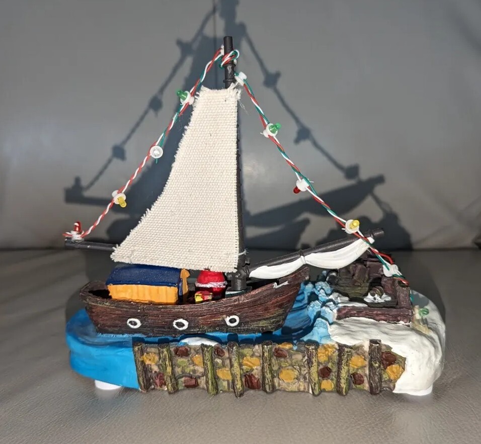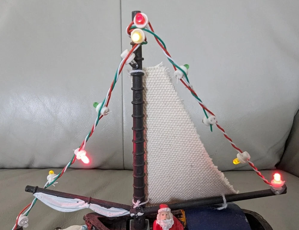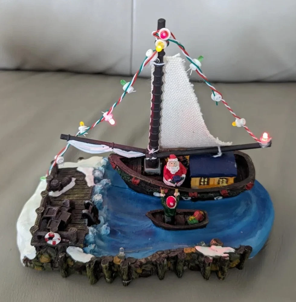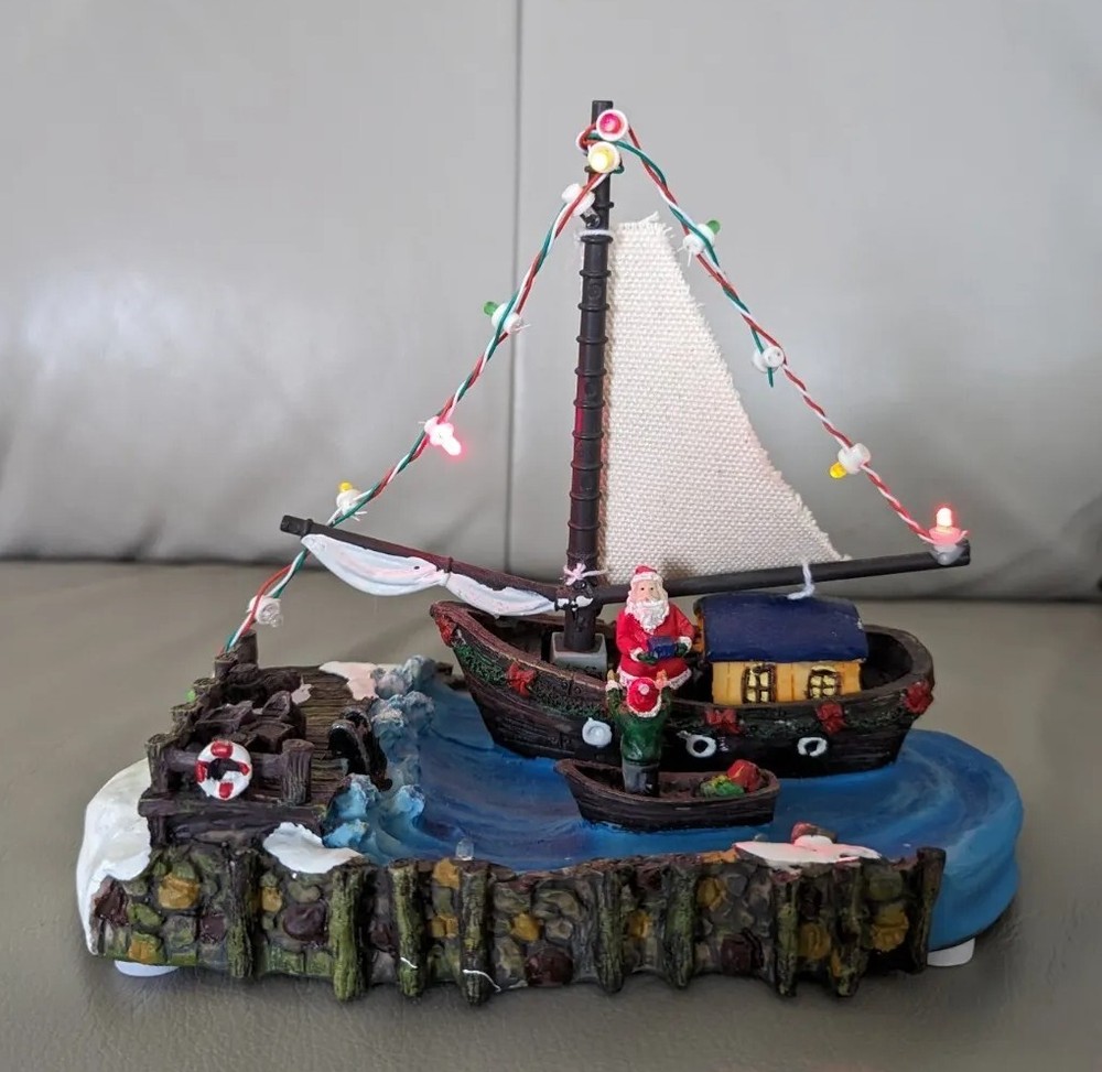 HOLIDAY TIME SANTA ON A SAILBOAT CHRISTMAS VILLAGE PIECE LIGHTS UP TESTED AND WORKS GREAT PRE-OWNED CONDITION COMES IN THE ORIGINAL BOX YOU WILL RECEIVE EXACTLY WHAT IS PICTURED