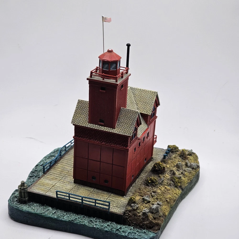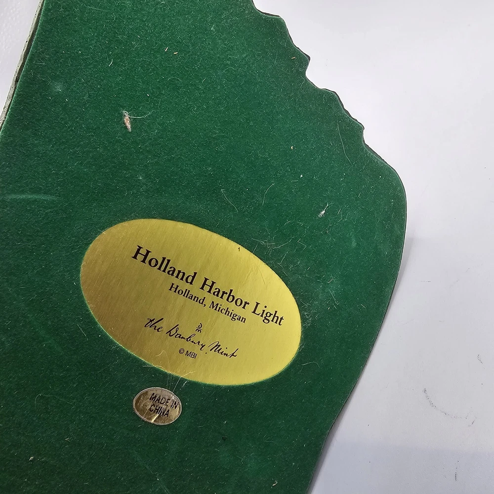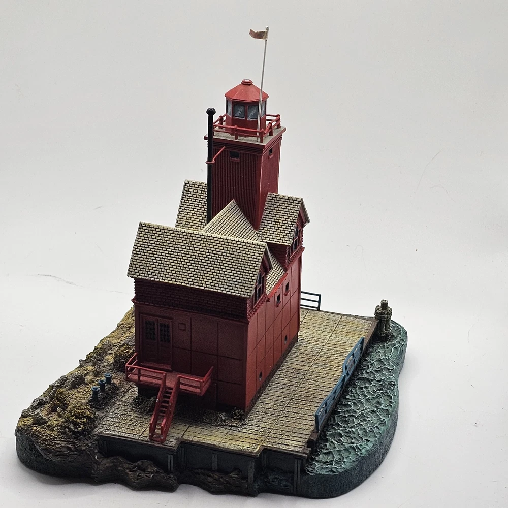 This beautiful sculpture by Danbury Mint depicts the Holland Harbor Light House in Holland, Michigan. The intricate details of the lighthouse and the surrounding water make this a perfect addition to any collection of decorative collectibles. The sculpture is made of high-quality materials and is expertly crafted to ensure its durability. Whether you are a collector or simply looking for a unique piece of decor, this sculpture is sure to impress. See photos for wear. Fence looks a little bent
