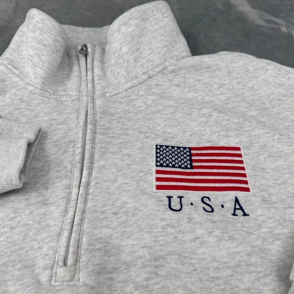 Hollister California Cropped Sweater Women's XL Quarter Zip America USA Flag