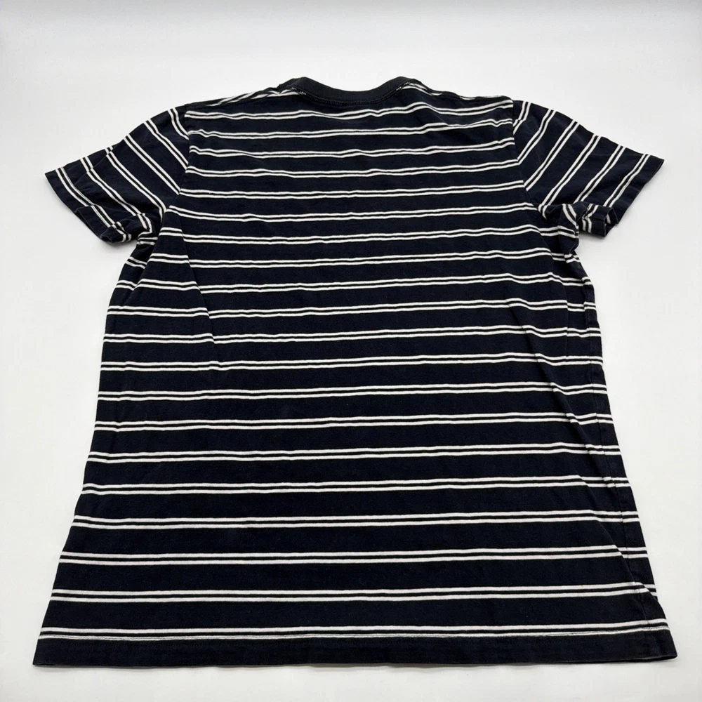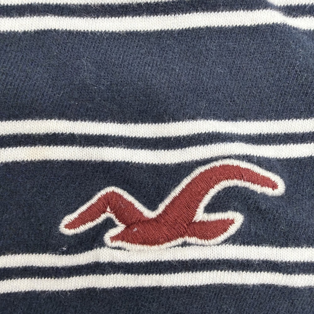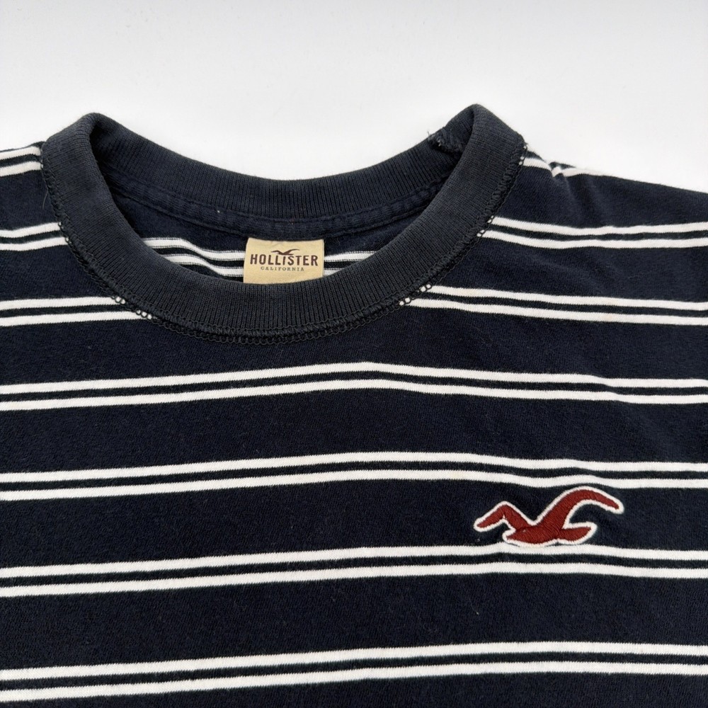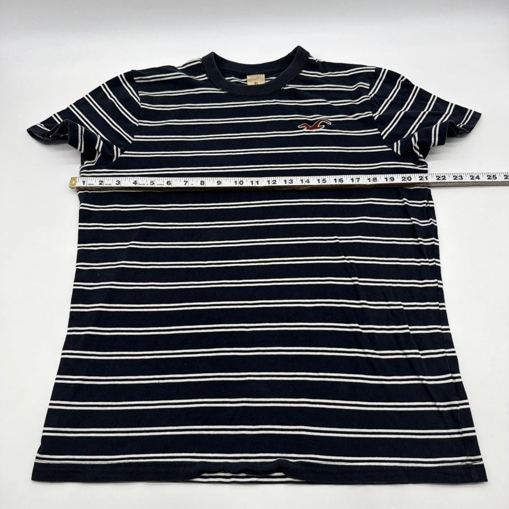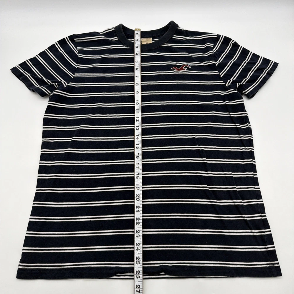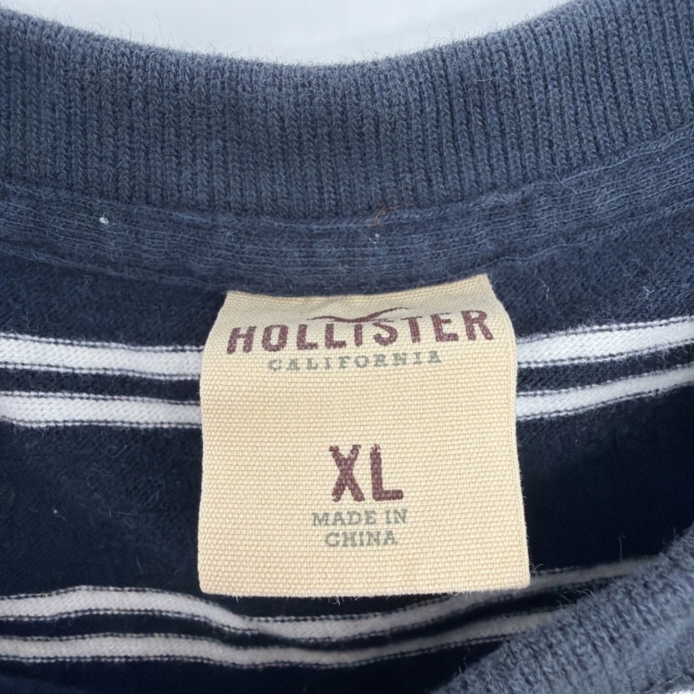 The Hollister California T-shirt is a men's XL shirt featuring a striped design with an embroidered logo. Made from comfortable cotton material, this short sleeve shirt is perfect for all seasons, especially summer, fall, and spring. The multicolor shirt has a crew neck and a relaxed fit, making it ideal for casual wear. With a theme inspired by California, this T-shirt is a stylish choice for any man looking to show his love for the state. Check pictures for flaws and measurements