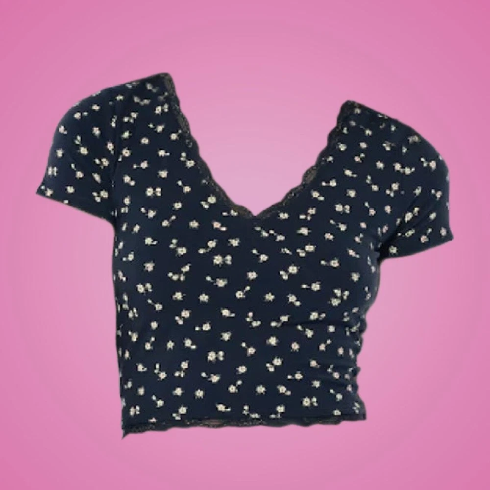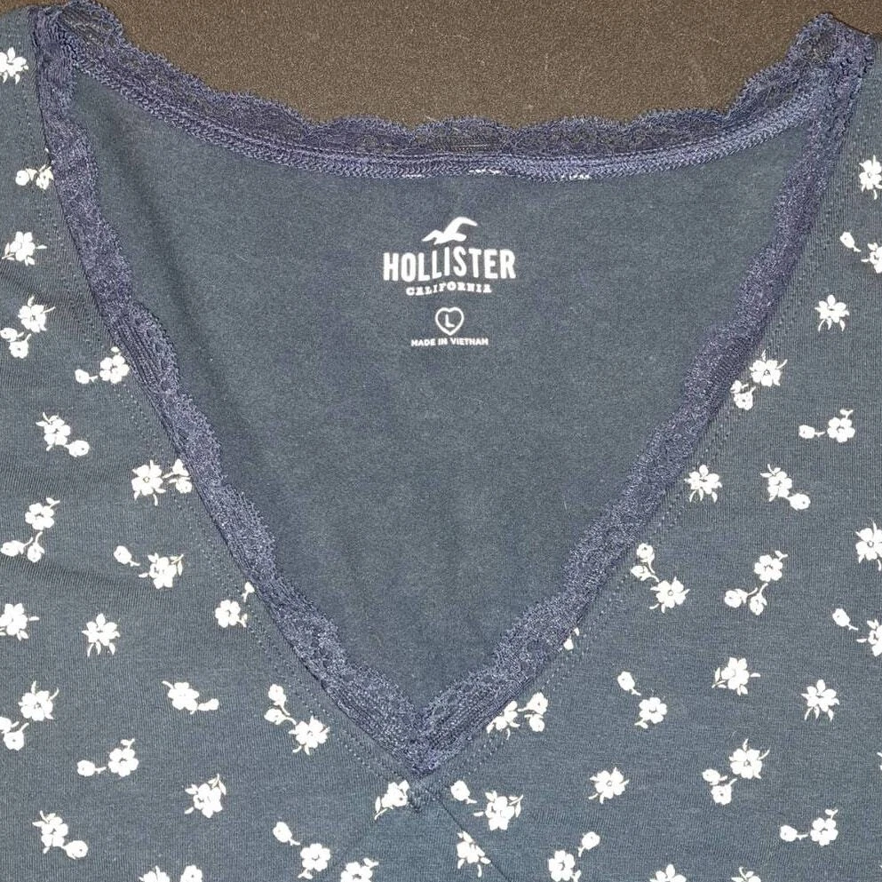 Hollister Dark Blue Lace Trim V-neck Baby Tee Size Large. New without tags. Will ship fast and with care!