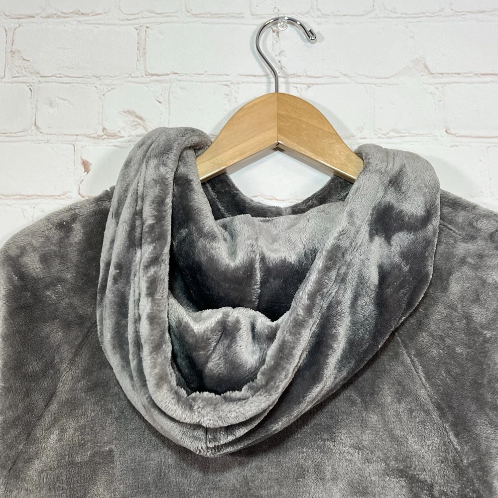Hollister Hoodie Womens Size Small Gray Faux Fur Cropped Sweatshirt Sweater See measurements for accurate fit Pit to pit 20 inches Shoulder to hem 21 inches Measurements are done flat lay