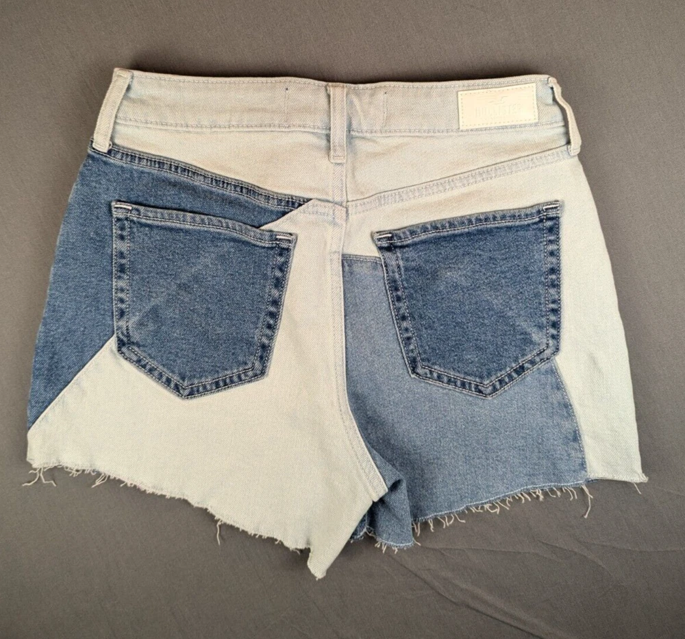 Hollister Jean Mom Shorts 26x3 Women's Ultra High-Rise Blue Patchwork NEW Denim