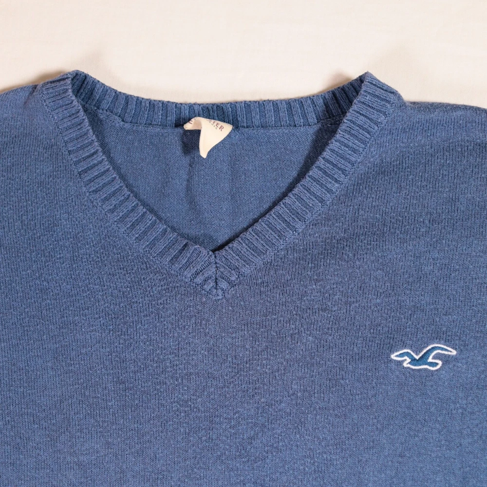 Hollister Blue V-Neck Jumper Men's Size XL Retro Long Sleeve Smart Casual Preppy Hollister Blue V neck pullover jumper with long sleeves Retro Y2K release Minor bobbling due to age Size 'XL' MEASUREMENTS (Flatlay, approx): -Chest (pit to pit): 21 inches / 53.5 cm -Length: 26.5 inches / 67.5 cm -Sleeve (from underarm): 22 inches / 56 cm Most of our items are sent in 100% bio-degradable, recyclable mailing bags, or sometimes re-used packaging, to help the planet. UK shipping is Royal Mail Tracked 48 so you can keep up with the progress.a Any questions, please ask - I normally reply within a few hours. Also, happy to consider offers.