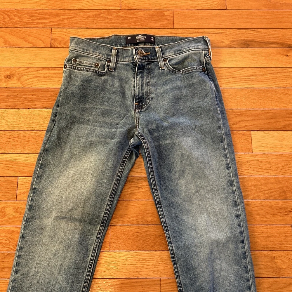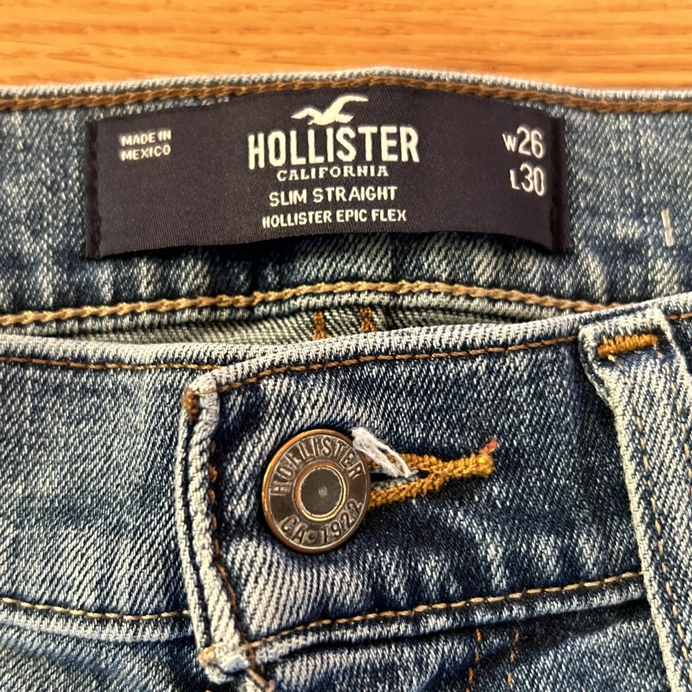 Hollister Slim Straight Epic Flex Denim Medium Blue Jeans Waist 26 Length 30 Actual measurements: Waist laying flat 15” Rise 9.5” Inseam 30” Excellent condition from a smoke free home. Inventory dg