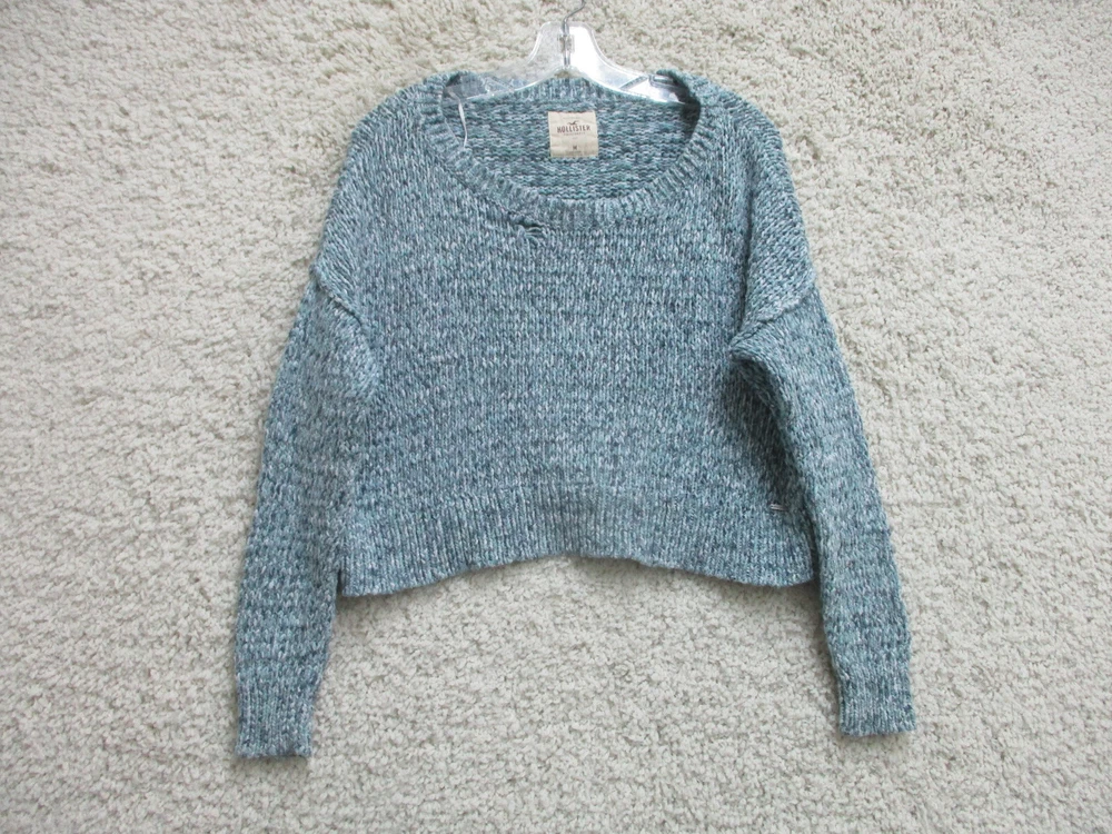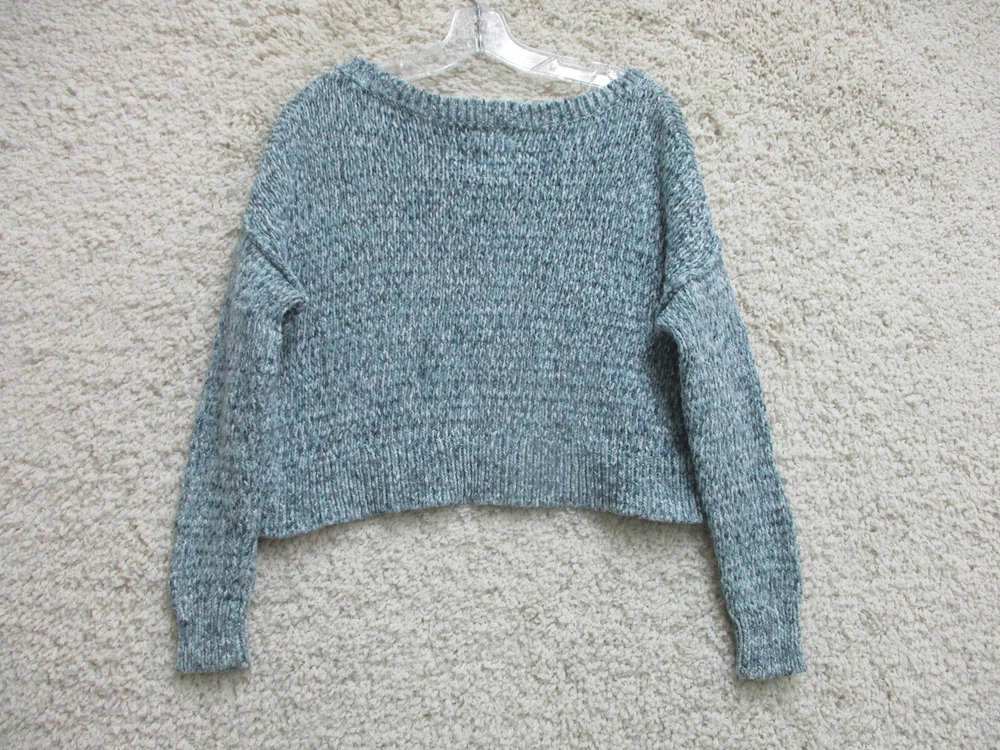 Hollister Sweater Medium Adult Blue Pullover Knit Boat Neck Cropped Womens M