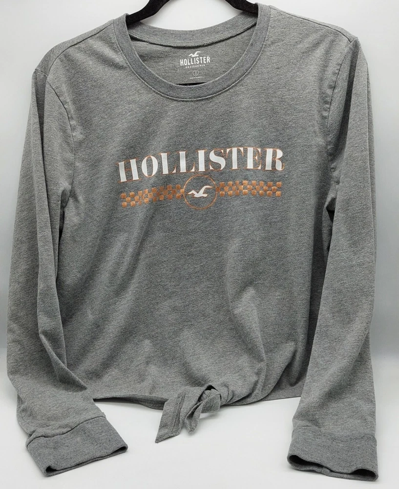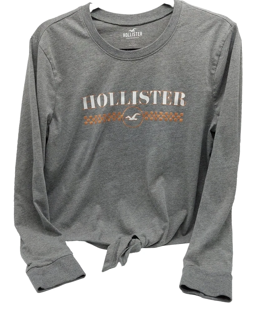 Hollister Women's Long Sleeve Gray Tee Tie In Front Pullover Size Small