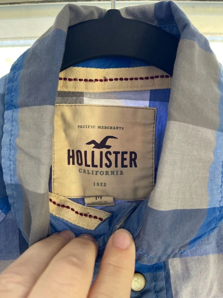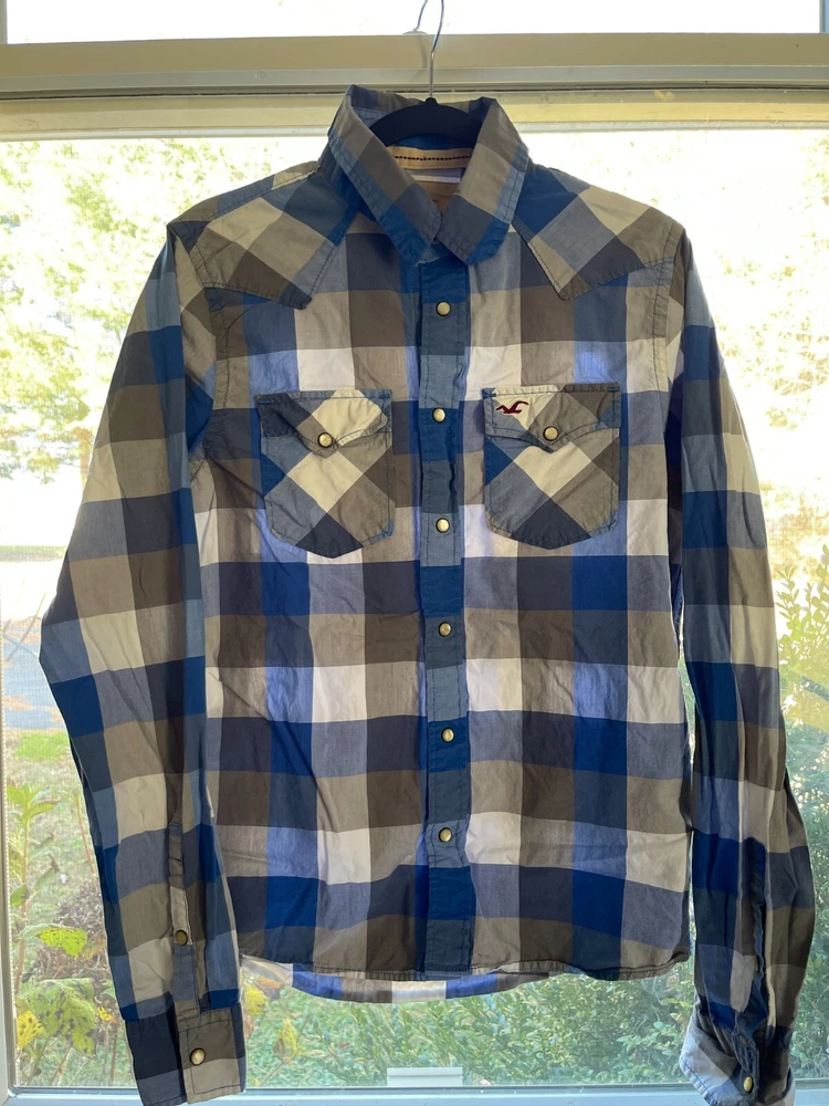 Brand: Hollister Features: All Seasons, Easy Care, Pockets Accents: Button, Embroidered Season: Fall, Spring, Summer, Winter Fabric Type: Woven Color: Multicolor Garment Care: Machine Washable Occasion: Casual, Party/Cocktail, Travel, Workwear Size Type: Regular Vintage: No Closure: Button Theme: Colorful Department: Men Size: M Handmade: No Type: Button-Up Country/Region of Manufacture: Vietnam Seller Notes: “Excellent Condition. No stains, tears, holes or defects” Collar Style: Button-Down Pattern: Plaid Neckline: Collared Sleeve Length: Long Sleeve Material: Cotton, Spandex Personalize: No Character: Blue Fit: Regular
