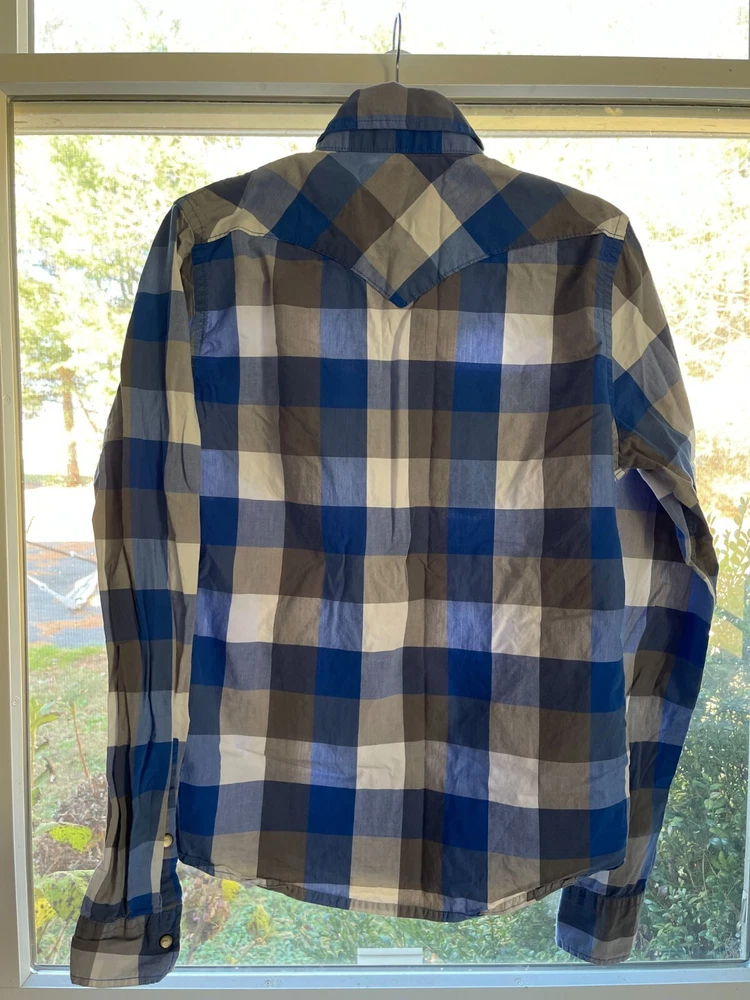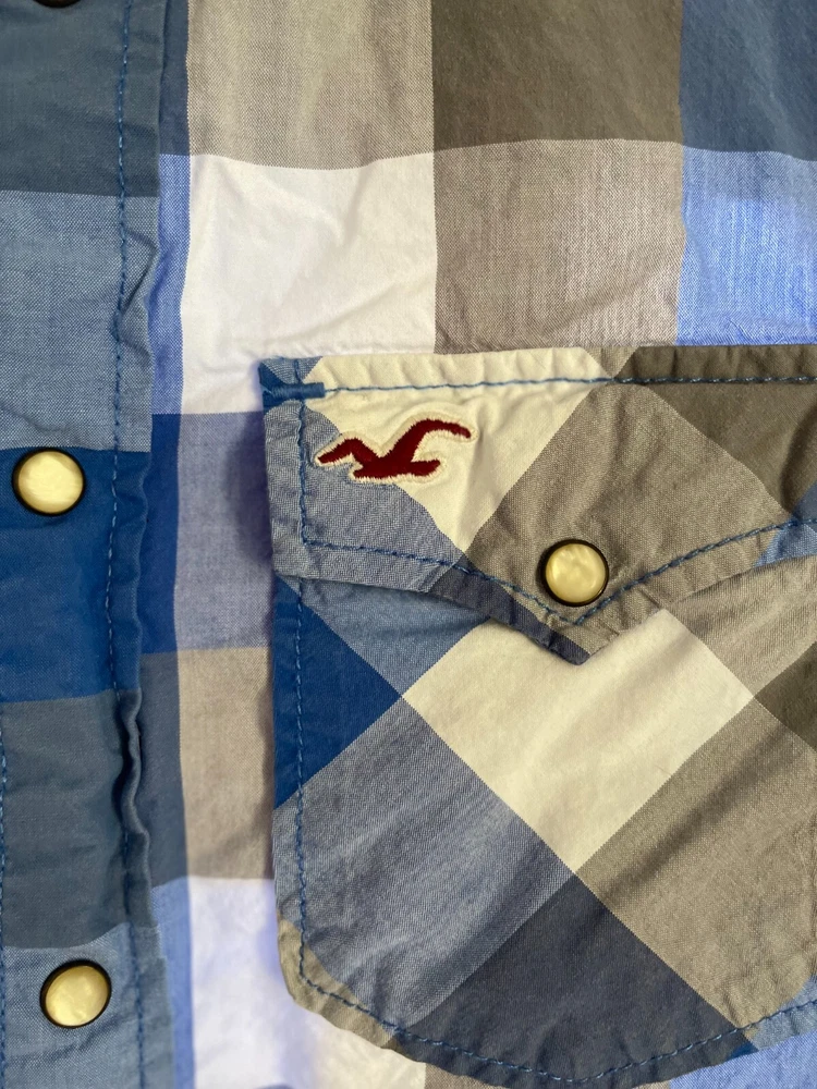 Hollister mens blue-white checkered plaid long sleeve button down shirt - size M