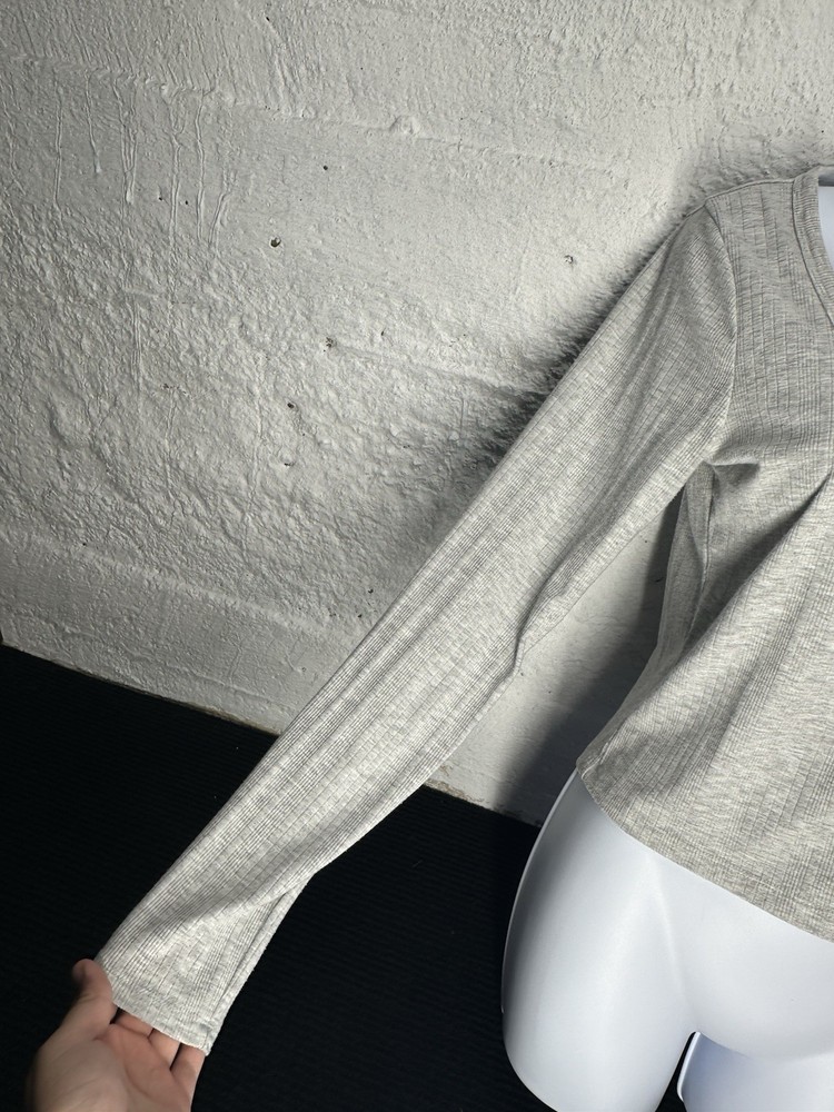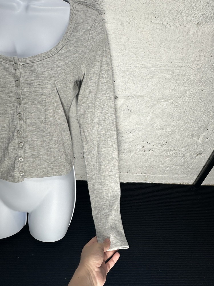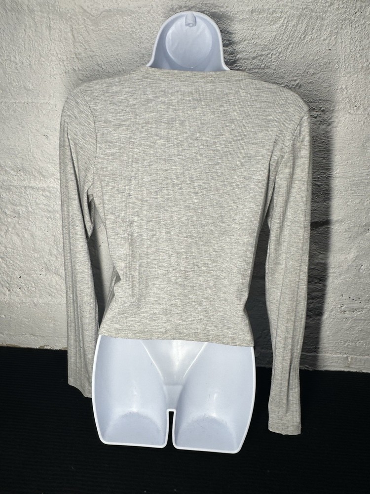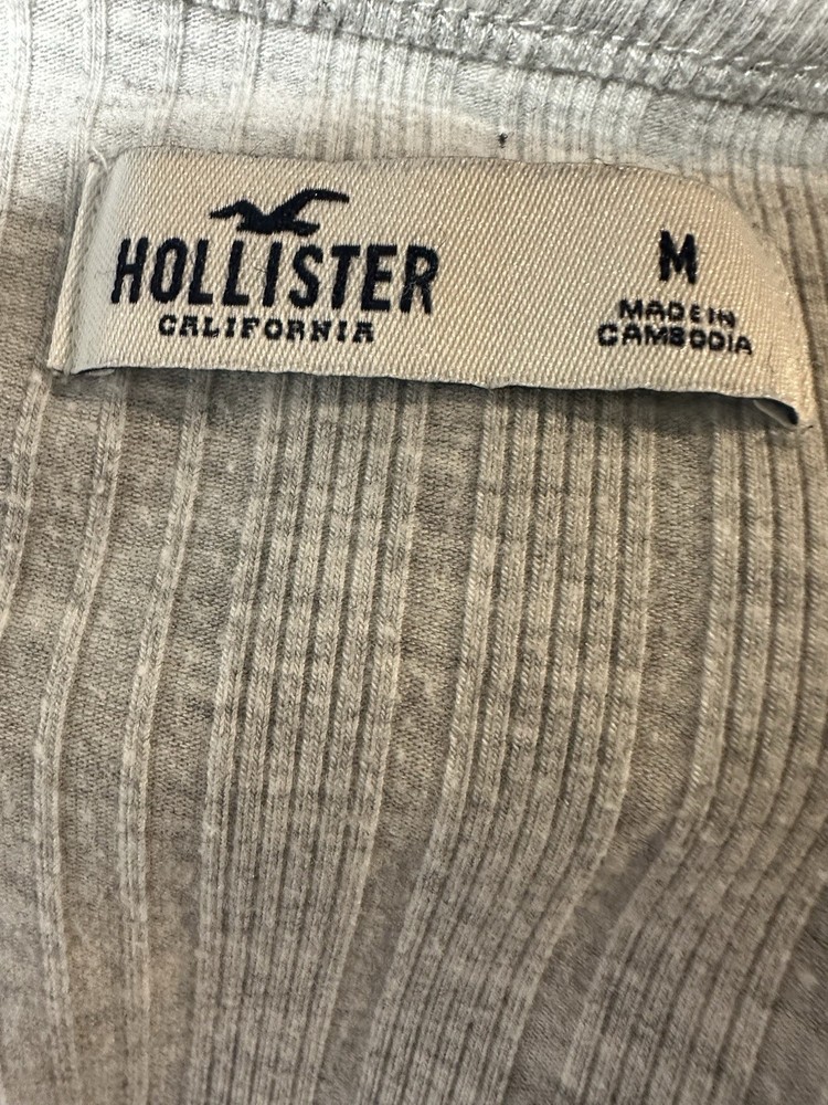This Women's Hollister light gray long sleeve top in size medium is a versatile and stylish piece perfect for various occasions such as travel, casual wear, or workwear. Made from a knit fabric blend of polyester, viscose, and elastane, this lightweight and stretchy top features a round neck, pullover closure, and button accents. The cropped style and solid gray color make it a classic and easy-to-wear wardrobe staple suitable for all seasons - winter, fall, and spring. Machine washable and in excellent condition, this Hollister top is a practical and fashionable choice for any woman's closet.