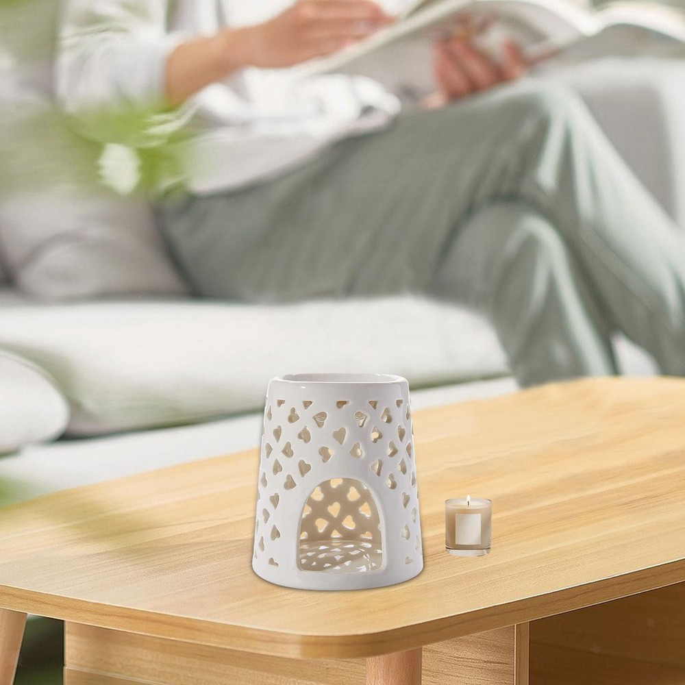 This wax melt burner is a gorgeous addition to any room! The elegant hollow heart design adds a charming touch, while the high-quality pottery ensures durability. It disperses fragrance beautifully, creating a cozy atmosphere. Perfect for bedrooms, living rooms, or even as a gift—functional and stylish!