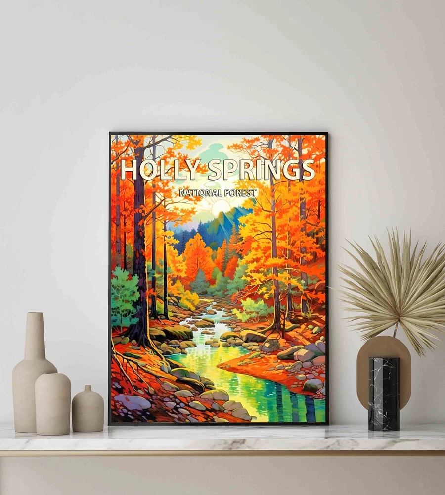 Holly Springs National Forest Poster Art Print Retro National Park Gifts Material: Premium luster photo paper Print type: Inkjet printing One side printed + The finish provides the highest possible resolution and color saturation + Lasts up to 200 years in color and 400 years in black-and-white + Printed on high-quality resin-coated photo base paper medium + Posters can be hung with double-sided tape, tacks, or framed + Hand washing with a gentle cry cloth is recommended for extended durability I will hand select the best choice of paper for your chosen design to ensure top quality results for a beautiful, bright and luxurious print. All prints are sealed in cellophane slips for protection during transportation, and are shipped in a protective cardboard envelope.