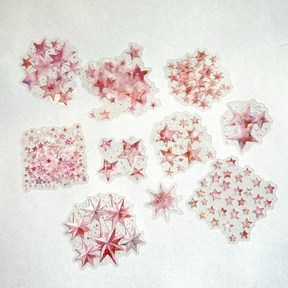 These are very pretty flake stickers. Holographic details. Slightly raised ink in areas to add dimensional effect. 10 stickers. The sticker in the last photo is approx. 2 3/4 x 2 1/4 inches. These are PET (thin clear plastic) stickers with a clear peel off backing. I have more stickers, washi tape and paper for sale. I do combine shipping. Please put all the items you want to purchase in ONE cart and then pay. I will refund you the difference in shipping after shipping label is printed. Let me know if you have any questions through eBay messaging. Thank you for stopping by!