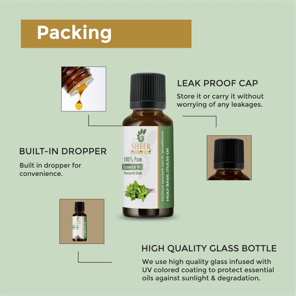 🌿 Holy Basil Oil (Also known as Tulsi Oil) Holy basil oil is a fragrant, earthy essential oil distilled from the leaves and flowering tops of the holy basil plant ( Ocimum tenuiflorum or Ocimum sanctum ), known as Tulsi in India. Tulsi is deeply valued in Ayurveda and Hindu traditions for its sacred and refreshing qualities. 📌 Botanical Name: Ocimum tenuiflorum or Ocimum sanctum 🌱 Plant Family: Lamiaceae (Mint family) 🏡 Common Names: Holy Basil Tulsi (in India) Sacred Basil 🪴 Plant Description: A small, aromatic shrub (usually 1–2 feet tall) Leaves: Green or purple, oval-shaped, with a slightly serrated edge Flowers: Small, usually purplish or white Strong clove-like fragrance due to natural oils in the leaves 🌍 Native Region: Native to India and widely grown in Southeast Asia Considered a sacred plant in Hinduism and grown near homes and temples 🧴 Oil Extraction: Part Used: Leaves and flowering tops Method: Steam distillation