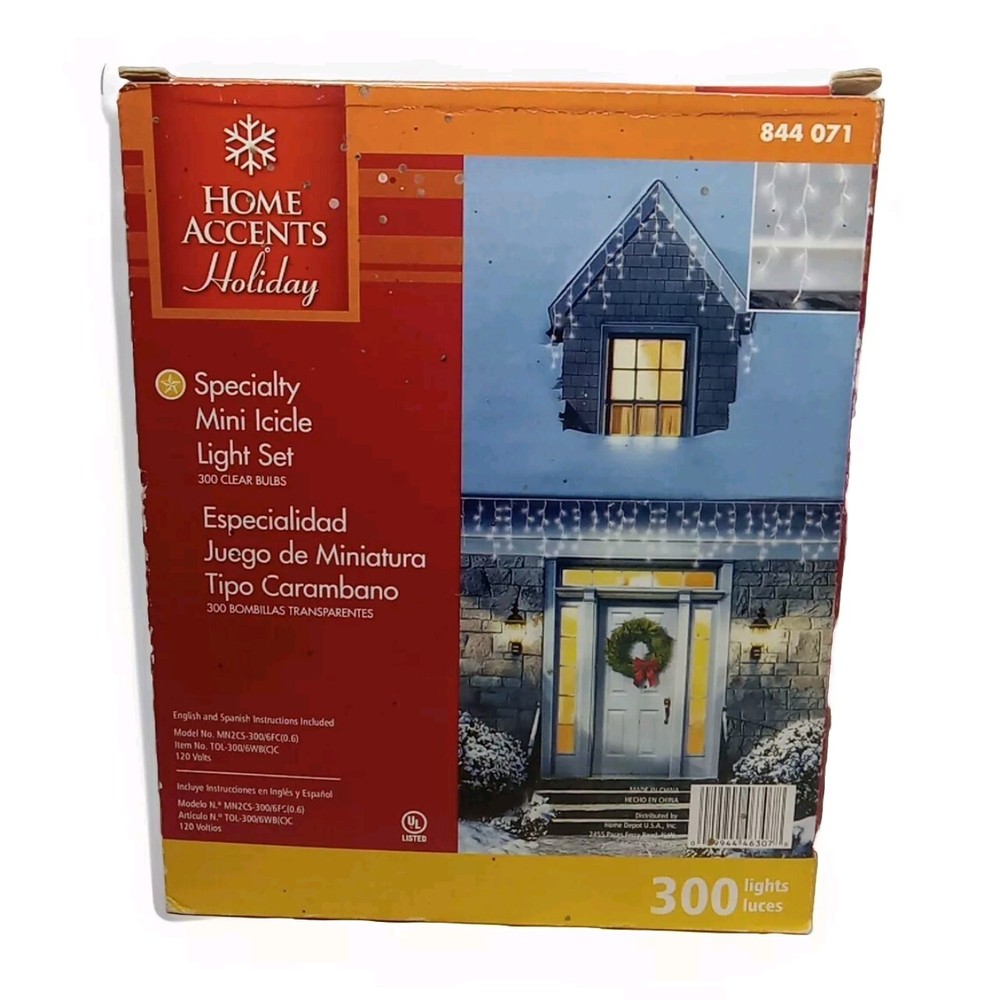 Elevate your holiday decor with these stunning Home Accents Holiday 300-Count Clear Icicle Lights. The 14.5 ft long string of lights is perfect for both indoor and outdoor use, and features a clear white light color that adds a touch of elegance to any space. The icicle light shape and 3-inch diameter make for a unique and festive look, while the wall plug-in power source ensures easy installation and use.
