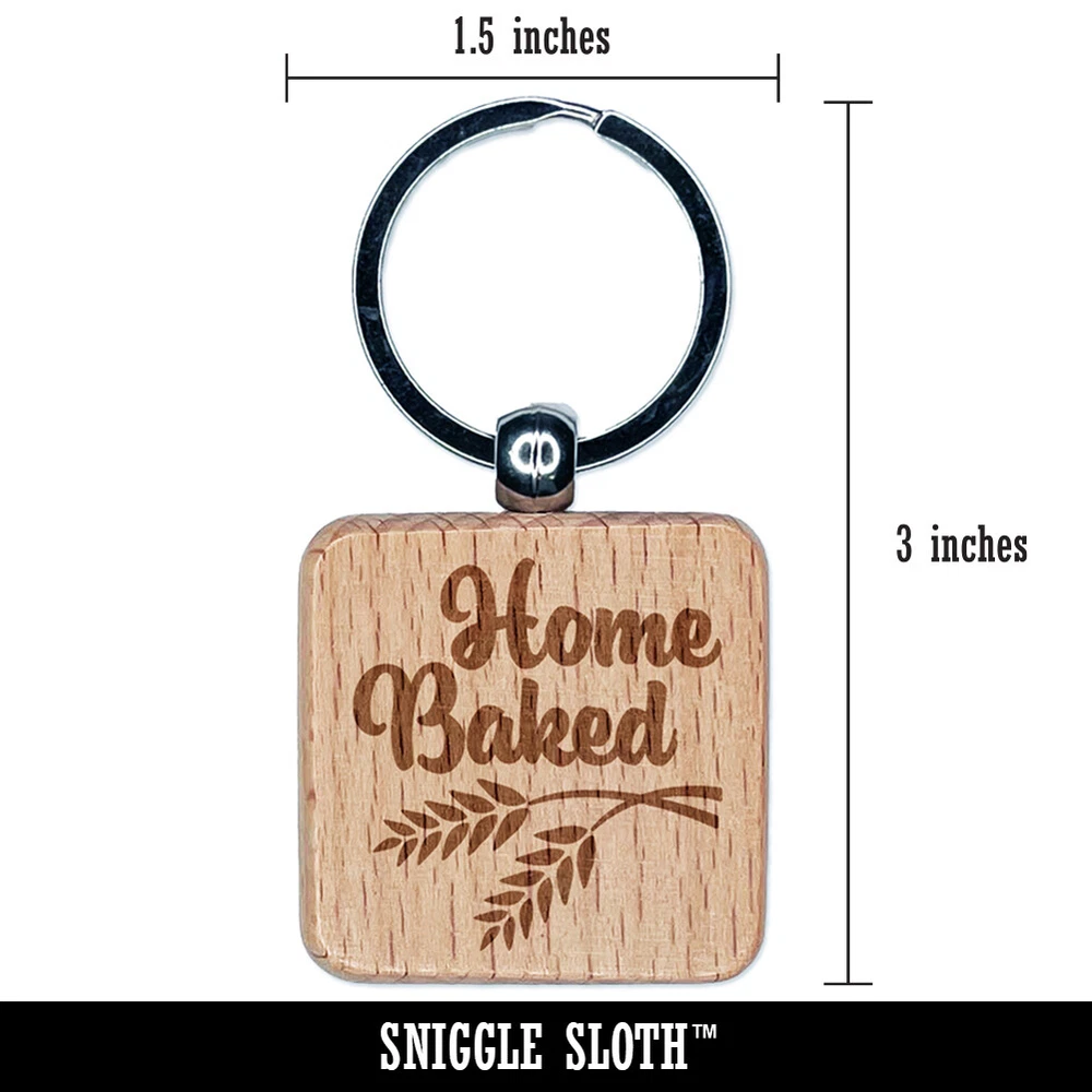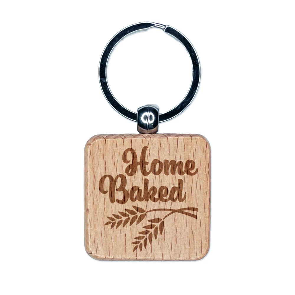 Home Baked Bread Baking Engraved Wood Square Keychain Tag Charm