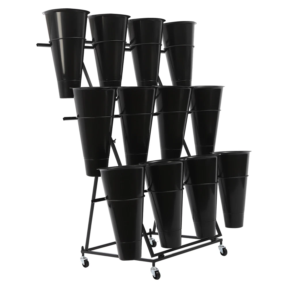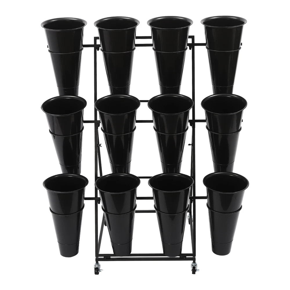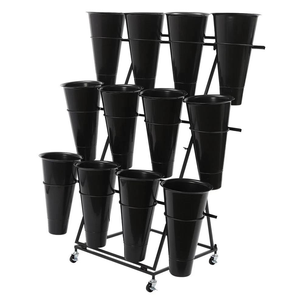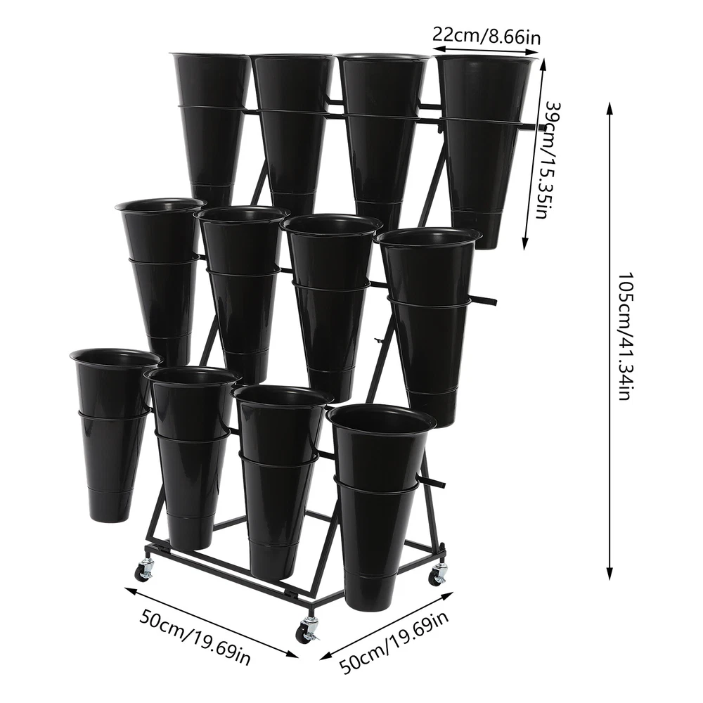 Flower Display Stand, 3-tier Flower Holder, Flower Display Stand with 12 Pieces Buckets Description This flower display stand is made of high-quality iron pipe with a solid structure, which allows you to place the bucket firmly on it and arrange the flowers steadily and neatly. It can be used for waking up flowers, keeping flowers, or decorating. It is not only a reflection of the beauty of flowers, but also a sublimation of the style of the florist. We believe that this product will win the favor and praise of customers, and become a flower mecca in their hearts. Details Practical Bucket : The 15.35-inch deep bucket gives it the unique ability to hold most types of slender bouquets while ensuring that the roots of the bouquets can immerse themselves in fresh water and draw in the nourishment of life. Smooth Edges : They not only enhance the aesthetics of the product but also improve safety during installation and use. Application It is suitable for organizing and displaying plants in homes, florists, home balconies, gardens, clubs, weddings, and elsewhere. Key Feature Build to Last : High-quality iron, PP, and exquisite dispel rust process make this product hard, wear-resistant , and corrosion-resistant , which can keep practical and beautiful for a long time. 3-tier Structure: The three-tier structure makes effective use of limited space, and the delicate design allows 12 buckets to be embedded in an orderly manner, which is both an interpretation of pragmatism and a unique display of aesthetic concepts. Strong Stability : The sturdy material and reasonable structure provide 66.14 lbs load-bearing capacity for this product, so you can use it without worrying about collapsing and breaking. Multifunction : The 3-tier stepped flower display stand comes with 12 buckets to hold water and keep plants and flowers alive for a long time, can be arranged in different styles, and used as a decorative addition to any garden party or outdoor event. Attractive Appearance : Its geometric shape and classic black color enhance customers' visual experience and add flair to your shop. Wherever you place it, it will be a unique and refreshing sight. Effortless Clean : A simple structure and smooth surface make this product easy to clean. You only have to wipe it with a damp cloth. Easy to Move &Fix: 4 silent universal wheels (with brakes) make this product easy to move and fix, very energy-saving, and at the same time will not disturb others. Easy to Install : Simple structure and complete installation accessories allow you to install it yourself in a few minutes Specification Material: Iron, PP Surface Treatment: Dispel Rust Shape: Trapezoid Color: Black Assembly Required: Yes Mount Type: Floor Standing Style: Modern Number of Flower Rack Tiers: 3 Number of Universal Wheels: 4 Number of Buckets: 12 Load Capacity: About 30kg/66.14lbs Bucket Size(H*D): 39*22cm/15.35*8.66in Tier-spacing: 36cm/14.17in Cross Rod Length: 96.5cm/37.99in Flower Rack Size: 50*50*105cm/19.69*19.69*41.34in Flower Display Stand: Gross Weight: 6kg/13.23lbs Net Weight: 5.5kg/12.13lbs Package Size: 102*62*8cm/40.16*24.4*3.15in 12 Round Buckets : Gross Weight: 4kg/8.82lbs Net Weight: 3.5kg/7.72lbs Package Size: 61*24*24cm/20.12*9.45*9.45in Package Included 1*Flower Display Stand 4*Wheels 12*Buckets All Accessories for Assembly Notes Please note that flowers are not included in this product. We send the flower display stand and buckets separately to protect the product from damage during transportation. Please wait patiently for all parts to arrive. Please allow the slight color difference caused by the shooting light and the 1-3 cm error due to manual measurement, and make sure you do not mind before ordering. Payment Delivery details Terms of sales About us Contact us Payment We accept ebay payment 。 Fees such as import duties, taxes are not included in the item price or shipping costs. These charges are the buyer's responsibility. Delivery details Shipping: 2-9 working days to: USA Terms of sales We maintain high standards of excellence and strive for hundred percent customer satisfaction. Feedback is very important to us. We hope that you contact us immediately before you give neutral or negative feedback, so that we can address your concerns. It is impossible to address issues if we do not know about them! About us Your satis faction is our ultimate goal. We work hard to earn your trust and future business. Our certified technicians have tested each item before shipping. The unit comes with 1 year limited warranty on all manufacturing defects. a) If you receive a defective item, you may return it or ask for a discount. Please contact us within 14 days after you receive the package. b) What you returned must be intact and in its original packaging as re? u. Customer is responsible for shipping costs of the returned item. c) We will cover the cost of shipping back t with the shipping rate indicated in the registration page. We will send you a new unit or refund the full payment you paid. Thank you. Contact us Business Hour Business Hour: Monday To Friday: 8:30 AM to 5:00 PM (Beijing China time) Due to time zones, our reply to your questions may not be immediately. But within above working time, we will reply your email within 24 hours. If it's non-workdays, please kindly be patient and wait till Monday. Please contact us with ebay message. Please feel free to contact us if you have any questions. Monday To Friday: 8:30 AM to 5:00 PM (Beijing China time) Due to time zones, our reply to your questions may not be immediately. But within above working time, we will reply your email within 24 hours. If it's non-workdays, please kindly be patient and wait till Monday. Please contact us with ebay message. Please feel free to contact us if you have any questions. Brand unbranded Type Plant Holder Material Iron, PP Indoor/Outdoor Indoor & Outdoor Color Black Style Modern Mount Type: Floor Standing