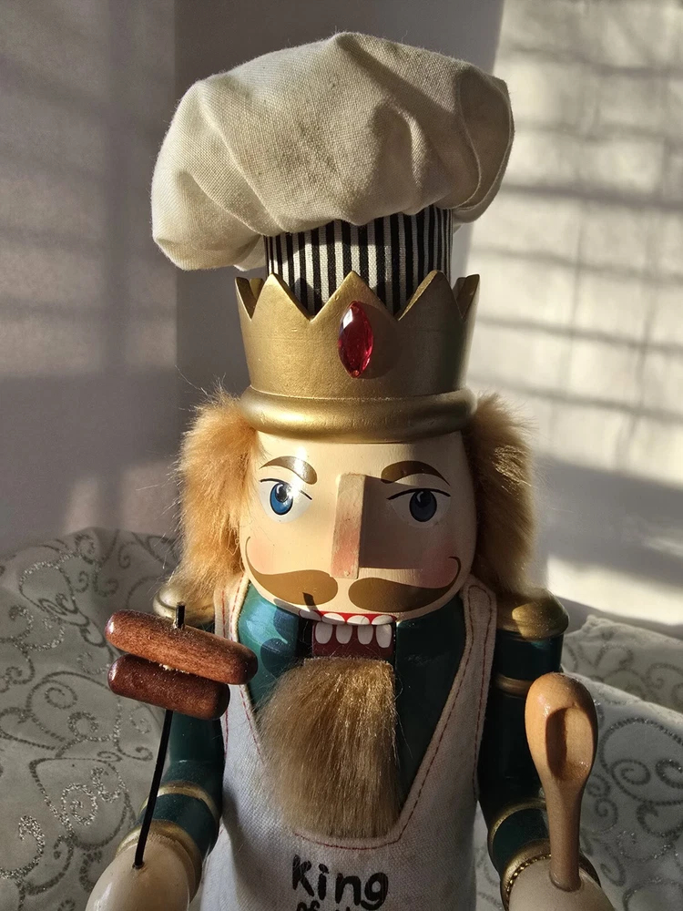 Bring the magic of Christmas to your home with this unique and beautifully crafted nutcracker. The King of the Grill design is perfect for any Christmas occasion and will add a touch of festive cheer to your décor. Made from high-quality wood, this nutcracker is durable and features an all-over multicolor pattern that is sure to catch the eye of anyone who sees it. The nutcracker comes with a hat and measures 15 inches in height and length, with a width of 5 inches. It is an original piece and not a licensed reproduction, making it a perfect addition to any collection. The nutcracker is designed for adult collectors and is suitable for family recipients. Add this decorative piece to your holiday-themed collection today!