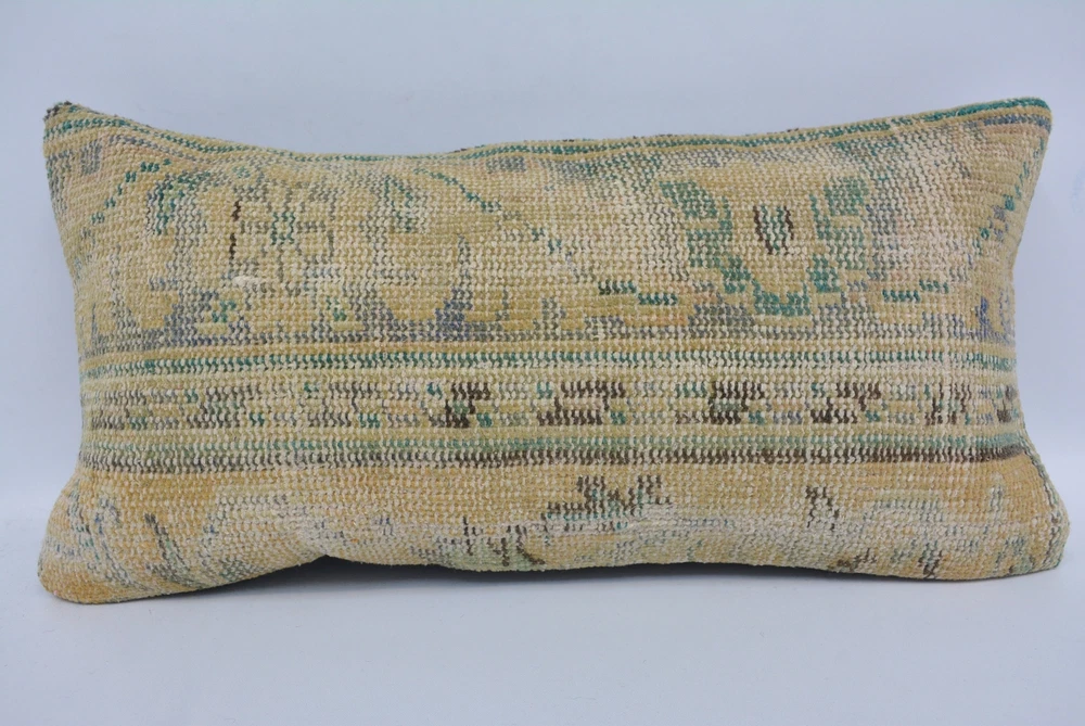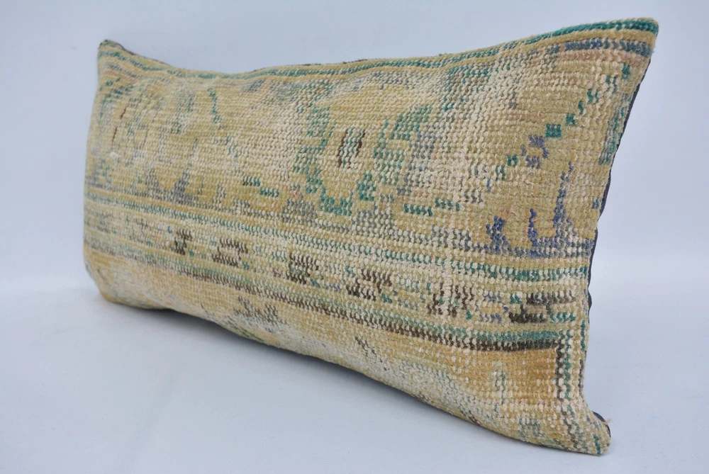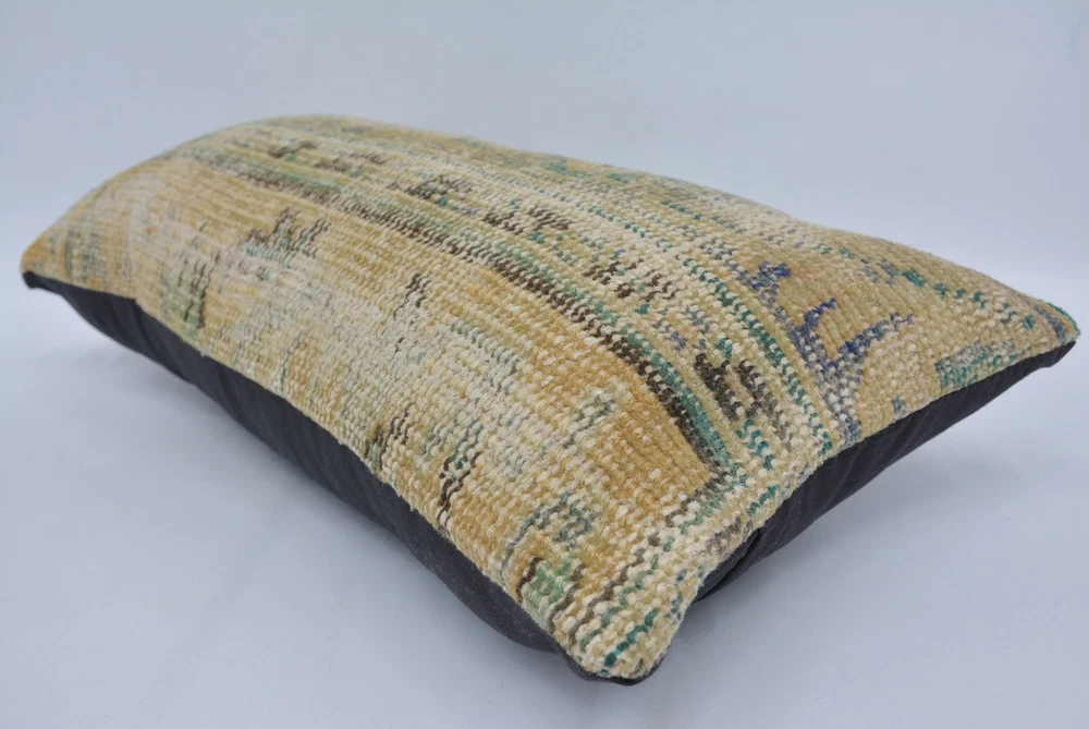 Home Decor Pillow, 12"x24" Beige Cushion, Turkish Kilim Pillow
