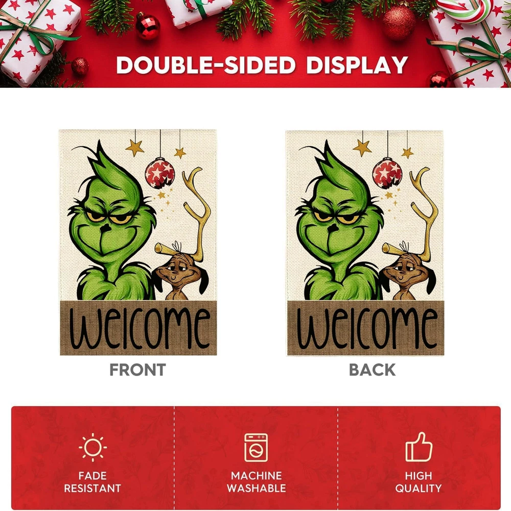 Christmas Garden Flag PACKAGE : ONLY 1PC Patriotic GARDEN FLAG (Flag holder sold separately). It is small, mini Garden size (28 x 40"), sleeve hanger fits most standard Flag Stand. HOME DECOR: Welcome guests to your home with this unique, seasonal flag. Perfect for any deck, patio, porch or and make charming decorative statements for any backyard, lawn or garden. DURABLE AND HIGHER QUALITY: Made of machine washable Spun Polyester which is durable and weather resistant. Double stitching panels on multiple rows and high quality sleeve to provide lasting strength. FEATURES: Sleeve hanger fits standard Banner/Flagpole, Bracket, Arbors or stand. Flag pole NOT included. Material: 100% Linen.seasons. EASY TO INSTALL AND MACHINE WASHABLE: All flags feature a sleeve at top for use with any standard flag pole or stand, easily slip the flags through the holes on either of the top sides to hang them on your garden flag stand.