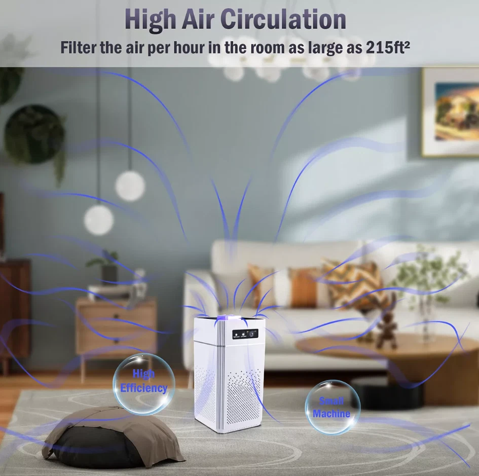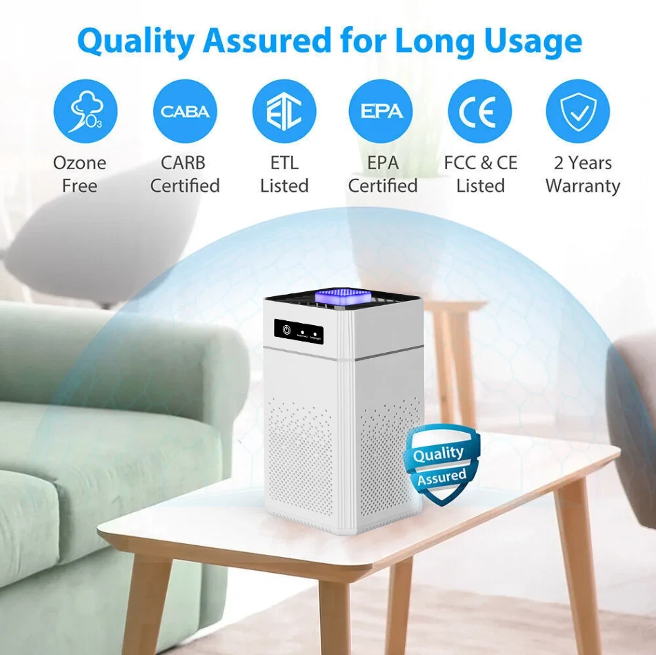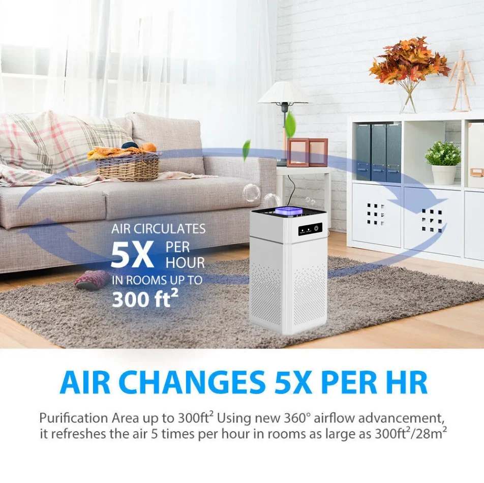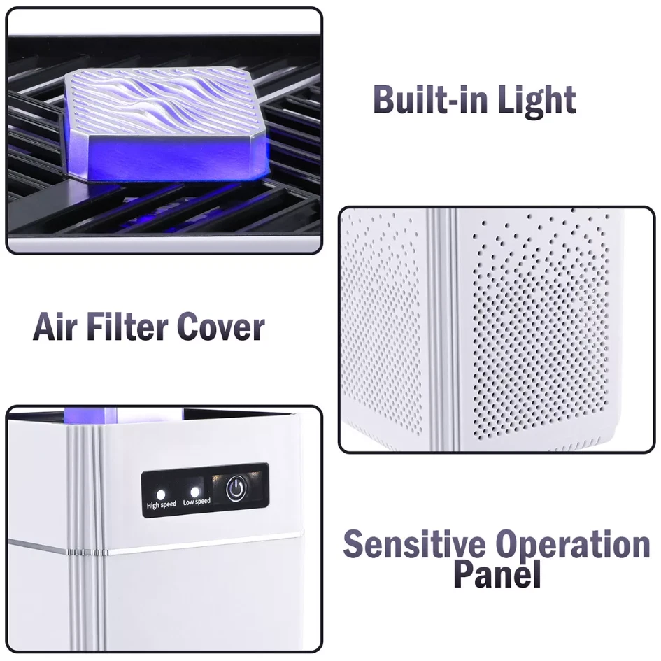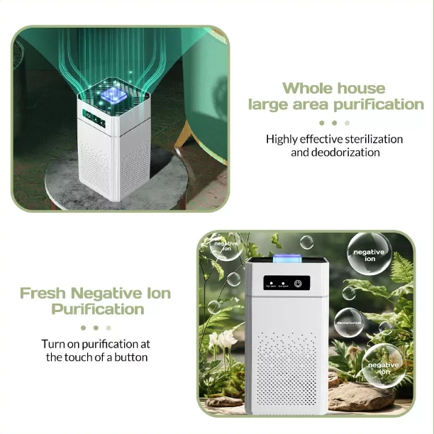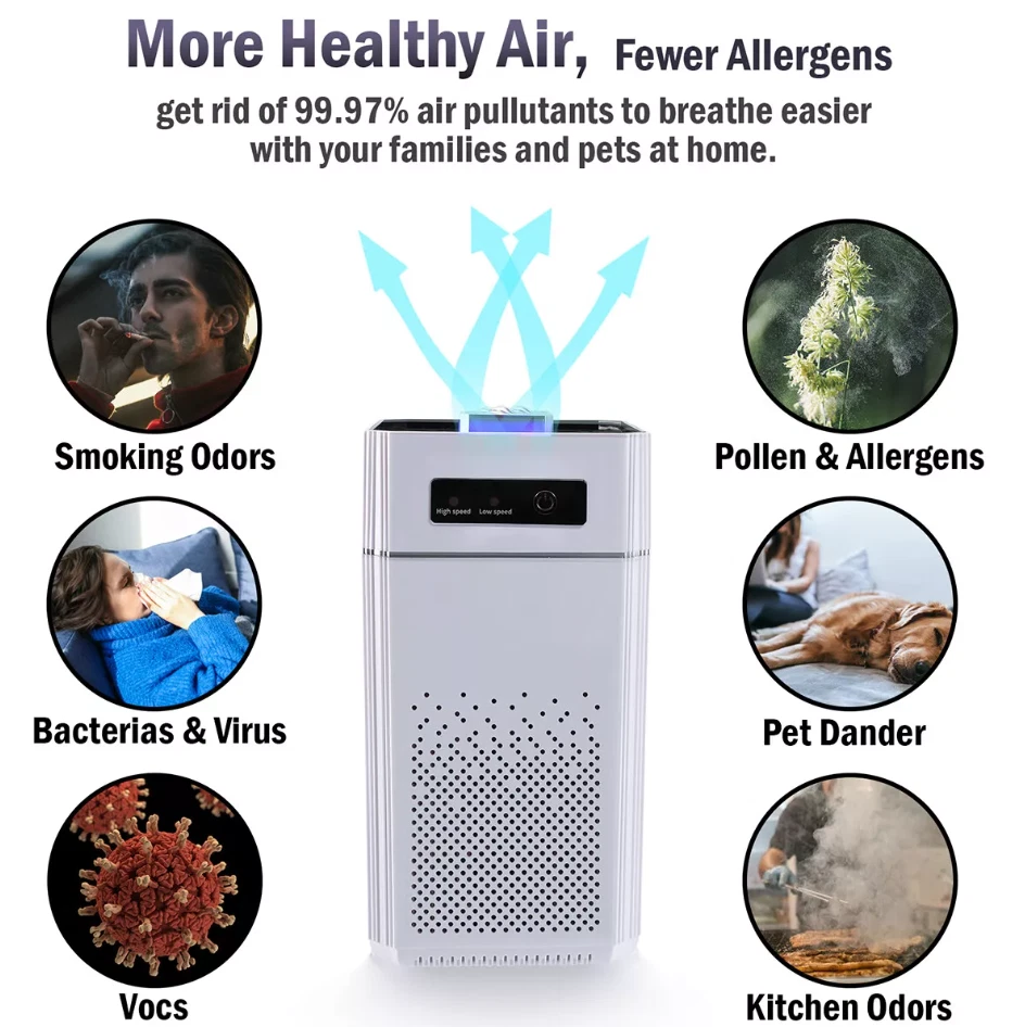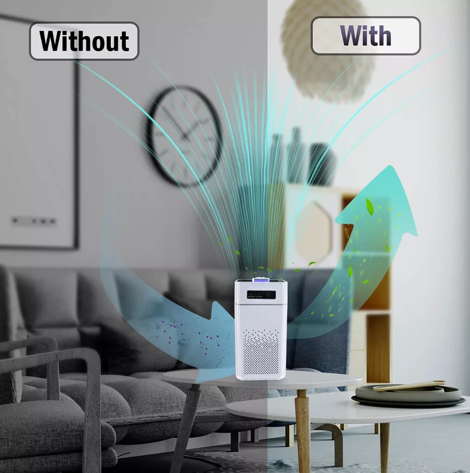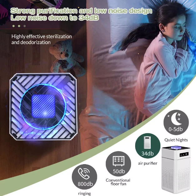Product Description: Feature : Efficient Purification: Air filter consists of pre-filter, HEPA filter, and activated carbon filter, which can effectively purify air pollutants such as smoke, PM 2.5, VOC, pollen, pet dander, etc. Help you improve air quality and care for the respiratory health of your family. PM2.5 Detection: Visualize air quality. air purifiers use the latest technology built-in chip can detect the change of air quality around the air purifier in real time. The lower the value, the better the air quality. ULTRA QUIET: Quiet air purifier is as low as 15 dB At this time, the wind speed will be reduced to the minimum and will not disturb your sleep. All indicator lights in bedroom air cleaner's sleep mode will also automatically turn off, allowing you and your family to breathe fresh air in sweet dreams. MULTIPLE FILTER CHOICES: Choose from a variety of replacement filters to best meet your needs. The Toxin Absorber Filter specializes in smog, toxins, and VOCs. The Smoke Remover filter specializes in wildfire, smoke and etc. And the Pet Allergy Filter helps to capture pet dander and absorb unplea Specification: Material: ABS Rated voltage: 5-12V Rated frequency: 50Hz Rated current: 0.6-1A Rated power: 5W Usage power:<18W Noise: 34dB Applicable area: 50-120㎡ Gear adjustment: 3 gears Power supply mode: USB interface Negative ion release: 10×20g pcs/cm² Wire length: 1.5m/59inch Filter size: 11.5*11.5*17.5cm/4.5*4.5*6.9inch Product size: 12.5*12.5*25cm/4.9*4.9*9.8inch Package Include: 1*Air Purifier 1*Instruction Manual 1*Filter Element 1*USB Data Cable PM2.5 Detection: Visualize air quality. air purifiers use the latest technology built-in chip can detect the change of air quality around the air purifier in real time. The lower the value, the better the air quality. [ULTRA QUIET] Quiet air purifier is as low as 15 dB At this time, the wind speed will be reduced to the minimum and will not disturb your sleep. All indicator lights in bedroom air cleaner's sleep mode will also automatically turn off, allowing you and your family to breathe fresh air in sweet dreams. MULTIPLE FILTER CHOICES: Choose from a variety of replacement filters to best meet your needs. The Toxin Absorber Filter specializes in smog, toxins, and VOCs. The Smoke Remover filter specializes in wildfire, smoke and etc. And the Pet Allergy Filter helps to capture pet dander and absorb unpleasant odo