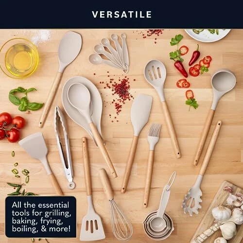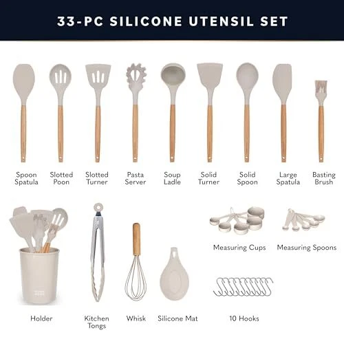 Return Policy Fast Delivery Trusted seller Home Hero 33 Pcs Kitchen Cooking Utensils Set, Non-Stick Silicone Cooking Kitchen Utensils Spatula Set with Holder, Wooden Handle Silicone Kitchen Gadgets Utensil Set (33 Pcs - Khaki) Product Description 33-Pieces Complete Kitchen Utensils Set - Our premium kitchen utensil sets has everything you need to cook the perfect dish: Solid Spoon, Slotted Spoon, Solid Turner, Slotted Turner, Pasta Server, Soup Ladle, Spoon Spatula, Large Spatula, Tongs, Egg Whisk, Measuring Cups and Spoons, Silicone Mat, Basting Brush, 10-pc Metal Hooks, and Utensils Holder Heat and Scratch Resistant - Our BPA-free, food-grade silicone cooking utensils set can withstand temperatures from -22° to 410°F so they don't melt or produce harmful fumes. And, the soft silicone tip will not scratch cookware, protecting non-stick pots and pans. Quality that Lasts - Say goodbye to flimsy kitchen tools that detach after a few uses. Home Hero's silicone spatula cooking utensils set is made with high-quality silicone and beechwood handles for lasting durability. Plus, wooden handles prevent heat transfer and scalding. Hassle-Free Storage - Our silicone utensil set includes a utensil holder with drainage holes and 10 stainless steel hooks, so you can store and dry tools easily. The beechwood handles also feature hanging holes. Enjoy a clutter-free kitchen with these household items! Customer service - Please, if you have any questions or issues regarding Home Hero first home essentials please do not hesitate to send the seller a message through we will respond within 24 hours. Shipping Returns Payment Shipping Shipping is FREE to all addresses other than APO/PO boxes in the lower 48 states. All our stock ships from US-based warehouses. Shipped via USPS or UPS (depending on location and package weight) Unless stated otherwise, all orders will ship within 24-72 hours of your payment being processed. Check our feedback to see the great reviews of FAST shipping we offer. Returns Seller does not accept returns Payment We currently accept payment via eBay managed payments only. Once payment is cleared, we will dispatch your shipment within 1-3 business days. Please refer to the "Shipping" tab for more information regarding shipping speed to your destination.