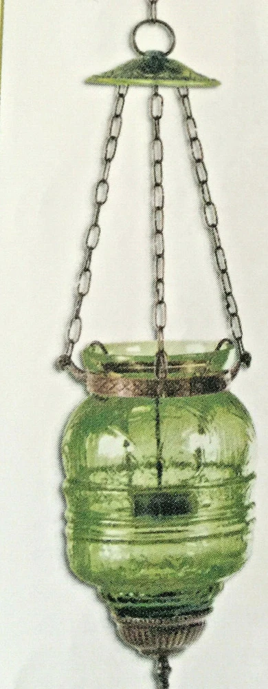 Home Interior-Better Homes and Garden--"Moroccan Pendant" Emerald. Metal and glass. Approx 5 1/4" x 9" . with 21 1/2" hanging chain. Item was removed from box for picture taking. I do combine shipping for savings. If you have more than one item that you are purchasing, just request a revised invoice.