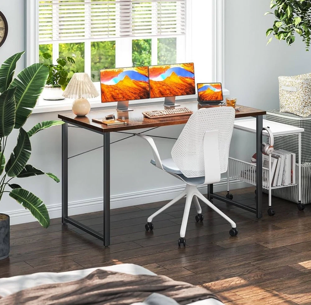 Diversified Use of Scenes】7 top & 3 leg colors are offered to help you find the perfect color combination and can be your winning secret to having different style room. This dedicated computer desk is designed for you to work and study in the classroom, office or at home. 【Small Desk Panel Dimension】48"(L) x 20"(W) x 29"(H) . Large space for a computer desk, great choice for home office activity including writing work, offering plenty of leg room for rest and storage. 【Sturdy Enough for Use】Thick metal frames made of heavy-duty powder coated steel improve stability and safety in use. The extremely easy to clean desktop is waterproof and scratch-resistant. Legs of high thickness are strong enough to support heavy-duty parcels. 【Easy & Fast Setup and Clean】All tools are prepared in the package, so just follow the clear instruction to assemble the desk effortlessly within 30mins! Melamine veneer tabletop is waterproof ,heat-resistant and dust free so you just need a damp 【100% Customer Satisfaction】 Your Satisfaction is Our Goal. We are here to support you if you encounter any problems before or after purchase. Don't wait any longer, enjoy it right now.