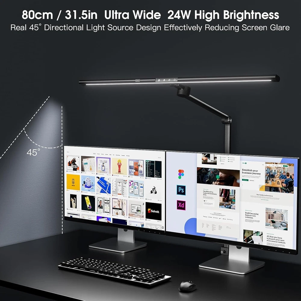 Under Desk Foot Warmer Silent Personal Space Heater With Thermostat and Timer 73.86 USD 77.75 USD Free shipping 5% off Digital Display Ceramic Heater 750W Wall Outlet Plug-in Space Heater White 44.95 USD 47.32 USD Free shipping 5% off 1500W Portable Ceramic Space Heater with Thermostat Tip-Over Overheat Protection 39.72 USD 41.81 USD Free shipping 5% off Portable Oscillation Space Heater 1500W PTC Ceramic Electric Heater w/Thermostat 52.24 USD 54.99 USD Free shipping 5% off 1500W Space Heater, Portable Electric Heater Heat Up 200 Square Feet for Indoor 48.92 USD 51.49 USD Free shipping 5% off 2PCS Milkhouse Space Heater 1500W Electric Heater w/Thermostat 3 Heat Settings 91.19 USD 95.99 USD Free shipping 5% off Heated Floor Mat Foot Warmer Under Desk 19.7x21.7in Heated Feet Rest Home Office 47.69 USD 50.2 USD Free shipping 5% off Portable Electric Space Heater w/Thermostat Overheat Protection Energy Efficient 40.86 USD 43.01 USD Free shipping 5% off Cat Water Fountain w/Water Level Window 3.2L Stainless Steel Auto Water Fountain 45.59 USD 47.99 USD Free shipping 5% off 4L Automatic Cat Feeder WiFi Automatic Cat Food Dispenser w/APP Feeding Control 40.86 USD 43.01 USD Free shipping 5% off 4L Automatic Cat Dogs Water Dispenser with Placemat and Stainless Steel Bowl 40.86 USD 43.01 USD Free shipping 5% off 37"Cat Scratching Post Sisal Rope Scratcher with Dangling Teaser Ball/Covered 37.44 USD 39.41 USD Free shipping 5% off Finish Type Lacquered or Painted Base Material Metal Bulb Base E26 Product Dimensions 2.2"D x 31.8"W x 43.3"H Lamp Type LED Desk Lamp About this item 【Eye-caring, Ultra 31.5"W 24W Brightest】Our desk lamp uses the latest LED technology, no blue light and no glare, soft light source protects your eyes from fatigue. This is very suitable for large workbenches with wide curved monitors or dual monitors, drafting desks, and architect desks, allowing you to have a good lighting environment when working, reading, studying, drawing sewing, and crafting 【Asymmetric Optical Design & Gesture Sensing】Asymmetric optical design for work at home office or multi-screen professionals, 45°side-emitting light source is hidden inside the lamp head, eliminates the screen reflections that most common desk lamps produce. Wave your hand to turn the desk lamp ON / OFF without touching it 【Adjustable Brightness & Light Mode】 You can also manually adjust the brightness and color temperature as needed using the touch controls. Warm light can make people relax and comfortable, cool light makes people more focused and work efficiently. The memory function remembers your last setting, no reset required 【Space Saving & Adjustable Angles】 Strong metal clamp supports a table top up to 2.2in / 5.6 cm, saving valuable space on your desk. The tall and sturdy aluminum alloy bracket coupled with the flexible metal shaft gives you flexible height adjustment and multiple lighting angles You may also like Outdoor Garden Hose Storage Pot Decorative w/Drainage Hole Hose Holder Patina US 85.49 USD 89.99 USD Free shipping 5% off Angle Head F1807 PEX Pipe Crimping Tool for Copper Rings 1" Angle Single Crimper 79.76 USD 83.96 USD Free shipping 5% off 3/8" Drive Impact Socket Set 48-Piece SAE/Metric Deep/Shallow Sockets Cr-V Steel 51.29 USD 53.99 USD Free shipping 5% off 208 Piece Tool Set Household Hand Tool Kit Auto Repair Tool Box for Home Repairs 68.39 USD 71.99 USD Free shipping 5% off 3-Shelf 3-Door Multi-purpose Cabinet Pantry Storage Cupboard Organizer Bookcase 43.74 USD 46.04 USD Free shipping 5% off 12V Coffee Maker with Glass Carafe & Stop-Drip Interrupt Feature for Office US 42.83 USD 45.08 USD Free shipping 5% off 301B Light Air Die Grinder 1/4"Right Angle 21000 RPM Ball Bearing Construction 62.35 USD 65.63 USD Free shipping 5% off 12 Inch Nonstick Deep Frying Pan Granite Stone Saute Pan for Cooking with Lid 45.49 USD 47.88 USD Free shipping 5% off 18in Ceramic Christmas Tree Pre-lit Hand-Painted Tabletop Holiday Decor Tree US 91.19 USD 95.99 USD Free shipping 5% off US Foldable Walker with Seat Aluminum Rollator Walker 8" Big Wheels for Seniors 102.59 USD 107.99 USD Free shipping 5% off 6.5Ft Beach Umbrella w/UV Protection &Matching Case Sun Shade Outdoor Umbrella 28.67 USD 30.18 USD Free shipping 5% off Outdoor Camping Grill 17.5" 10,000 BTU 1 Burner Portable Propane Gas Grill Black 43.08 USD 45.35 USD Free shipping 5% off