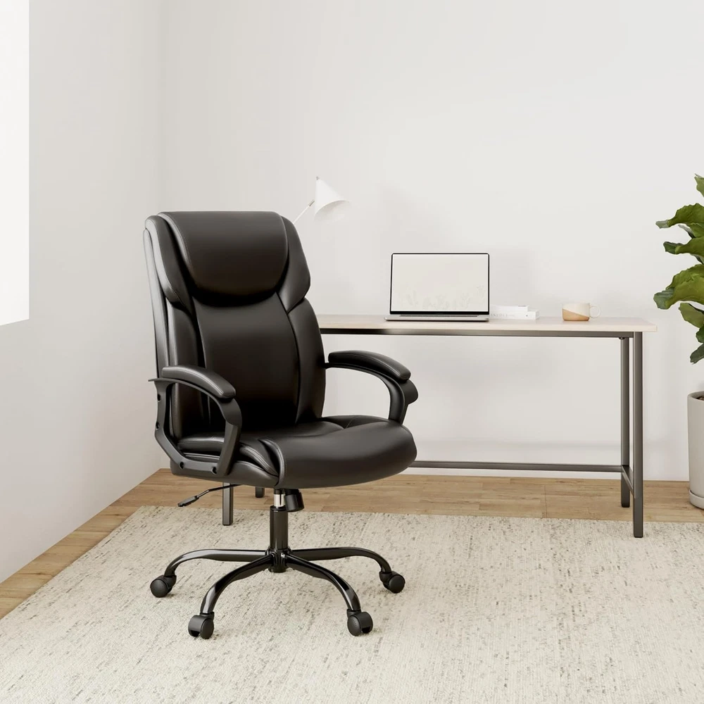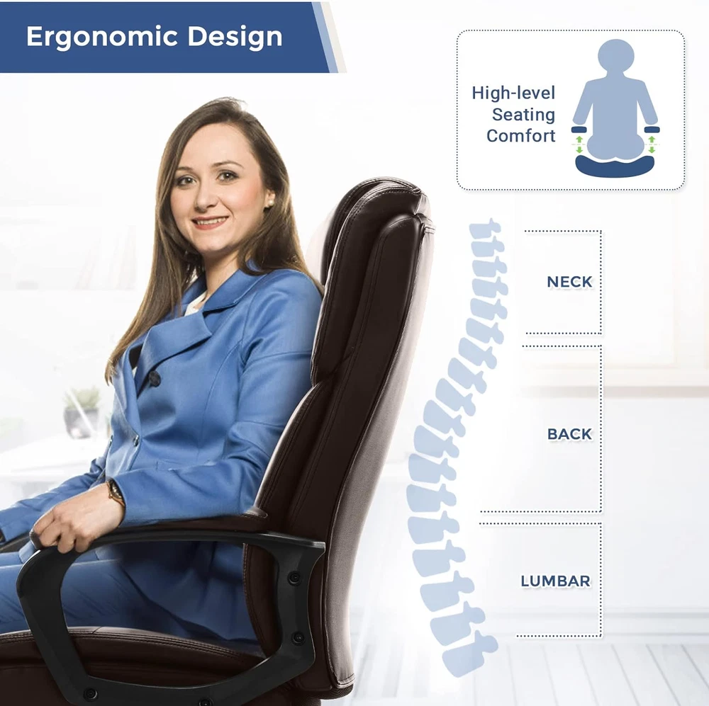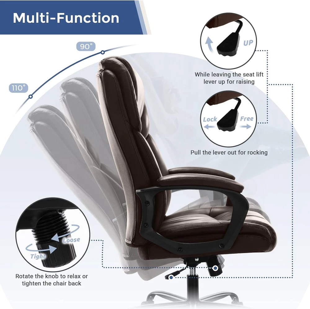 Store New Arrivals Add to Favorite View Feedback Contact Home Office Executive Desk High Back Computer Adjustable Height and Swivel Task Lumbar Head Support Chair, Leather Black Description Item model number ZU-NO39-BK Style Modern Cushion Style Boxed Edge Pattern Solid Age Range (Description) Adult Country of Origin China Is Electric No Theme Office/Gaming Frame Material Nylon Seat Material Type Faux Leather Material Nylon, Leather Item Weight 20 Pounds Unit Count 1.0 Count Room Type Office, Classroom, Library, Study Room Is Customizable No Tilting Yes Maximum Weight Recommendation 250 Pounds Model Name Home office chairs Arm Style With arms Finish Type Brushed Included Components Caster Indoor/Outdoor Usage Indoor Chair Backrest Width 22 Inches Back Style Solid Back Item Weight 20 pounds Fill Material Foam Surface Recommendation Hard Floor Is Foldable No Special Feature Adjustable Height, Arm Rest, Ergonomic, Rolling Furniture base movement Swivel Color Leather Black Form Factor Upholstered Furniture Finish Leather Shape L-Shaped Recommended Uses For Product Office, Relaxing, Reading, Gaming Product Dimensions 30"D x 22"W x 48"H Seat Depth 19 inches Size 30D x 22W x 48H in Improves Productivity -- The brown leather executive office chair with a height adjuster allows a height range from 19.5" to 23.4", adapting to various desks. This rolling desk chair with double upholstered seat cushions allows comfortable sitting at your desk while working, studying, or entertaining. The large, wide, comfortable high-back computer chair with wheels can maximize your efficiency at home or in the workplace. Built For Comfort -- This home office desk chair is designed to improve the sitting posture while working in the office and help avoid stiffness, pain, and discomfort in the neck and back. This big, tall office chair features an ergonomic S-shaped arch-back design that provides optimal support for the lumbar and neck. The tilt tension knob underneath the seat adjusts the flexibility of the lumbar support office chair to rock backward, with a tilt angle range of 90° to 110° to help relax back muscles. Luxury Look Of Leather -- The high-quality PU leather headrest, breathable backrest, thick seating cushion, and high resilience foam material allow you to sit comfortably for a long time. Soft leather cushion for armrests is durable and easy to clean. It is resistant to corrosion, stains, water, fading, and scratches, making it a top choice for upscale conference room office chairs. The elegant, modern, stylish leather office chair is an ideal gift for office workers, friends, gamers, or students. Sturdy & Durable -- Our modern desk chair with arms has a heavy-duty and durable nylon base, a safety gas lift, and rolling casters, which can support adults up to 250 pounds. The high back office chair matches other high-quality office accessories and strictly meets BIFMA Standards to maximally ensure your safety. 360-degree swivel multi-directional wheels ensure smooth rolling for long periods, providing freedom of movement and the convenience of communicating with people nearby. Easy To Install -- The tall adjustable office chair comes with all the necessary hardware and tools. With an uploaded video, most installations can be finished in about 15-20 minutes. This heavy-duty office chair suits various occasions like offices, game rooms, living rooms, bedrooms, dens, etc. It will make your space more modern and elegant. Product Description A Great Executive Office Chair for You! If you are looking for a computer desk chair at home or office, ZUNMOS PU leather office chair may be your best choice. It can hold 250 lbs for max weight, extra padded backrest for more comfort, and chair wheels are super smooth for movement. Meanwhile, the high resilience foam and ergonomic design can support your hours of working with no fatigue. This is a great executive swivel task chair! Thick & Wide Headrest Thickened & comfortable headrest can better reduce fatigue and protect the cervical vertebra while working or have a rest. Overfilled Lumbar Support Big and thick backrest, padding lumbar, close to the curve of the back, relax your waist and back while working and resting. Padded Armrest Soft armrest pads to provide your arms a comfortable experience. Soft & Flat Seat A double padded thickened comfort seat relaxes the hips, and bears the pressure of sitting for a long time working. Ergonomic Design The double-layer ergonomic backrest consists of soft elastic cotton and a native sponge that can fit the human spine and support the lumbar. BIFMA Certification Gas Lift High-quality gas lift withstands more pressure and lasts longer Smooth Rolling Casters Quiet rolling, flexible operation, office chair with the 360-degree swivel and smooth-rolling casters ABOUT US We offer the best prices around on high quality products. Our E-store includes media such as books, movies, music and games while offering electronics, toys, sporting apparel, clothing, tools, general home, garden items and more. SHIPPING We are always working hard to ensure your package arrives as soon as possible. Please understand that some factors like weather, high postal traffic, and the performance of shipping companies are outside of our control. We offer free shipping to the lower 48 states and ship within 2 business days of payment, usually sooner. We do not accept P.O. Boxes. Please provide a physical address. For shipping outside of the continental USA, we only use eBay's Global Shipping Program.The item is shipped to KY and then sent to the rest of the world. International customers are responsible for all duties and taxes. Continue to check out in order to calculate costs for shipping the item to your country. Messages regarding eBay's Global Shipping Program MUST be directed at eBay EXCLUSIVELY. RETURNS We offer a 30-Day Return Policy on items which you are not completely satisfied with. You have the option for a full-refund or an exchange of the ite